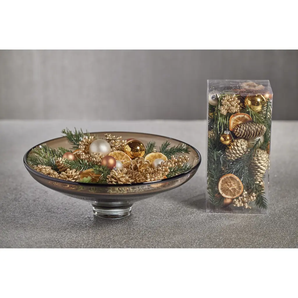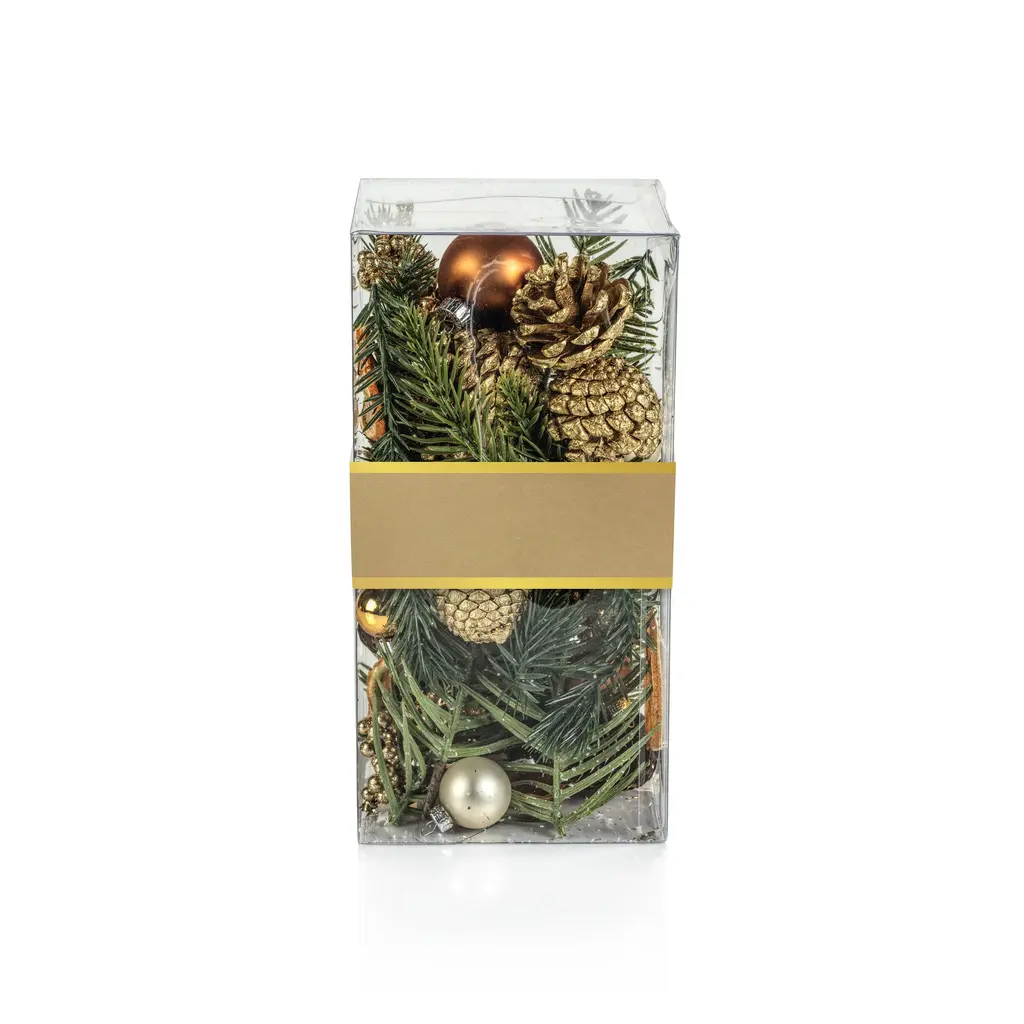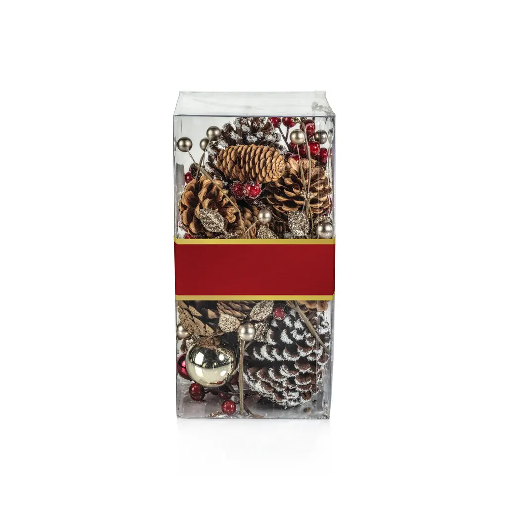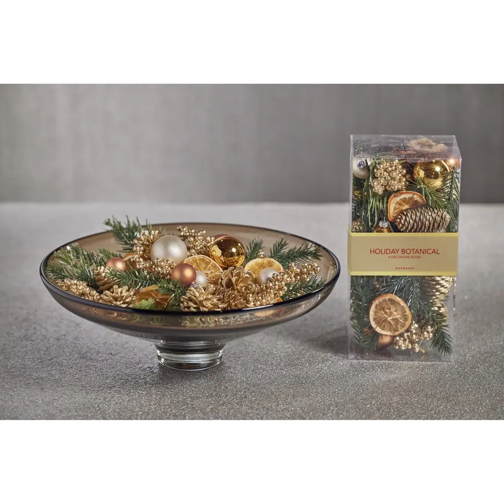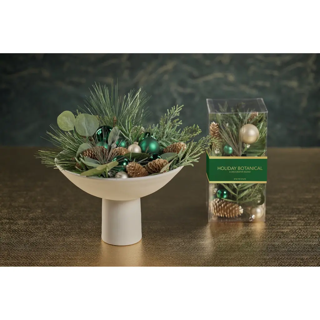 Holiday Botanical features an unscented mix of pinecones, faux greenery, and ball ornaments. The filler is great for displaying throughout the holiday season and it adds color and texture to any vase or decorative bowl. Features: Mix of pinecones, faux greenery and ball ornaments Add colorful vibes Comes in a clear plastic box Dust with dry cloth or blow dry on cool setting