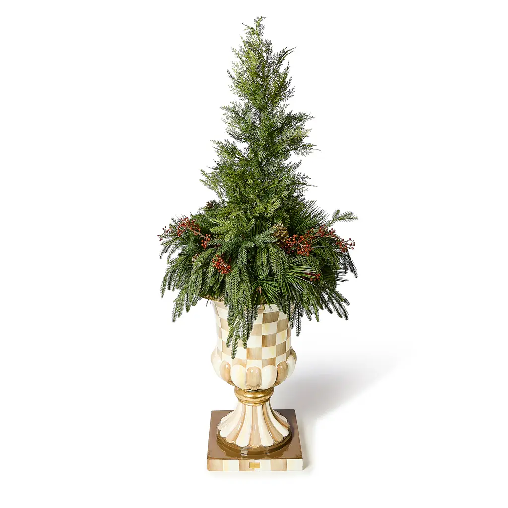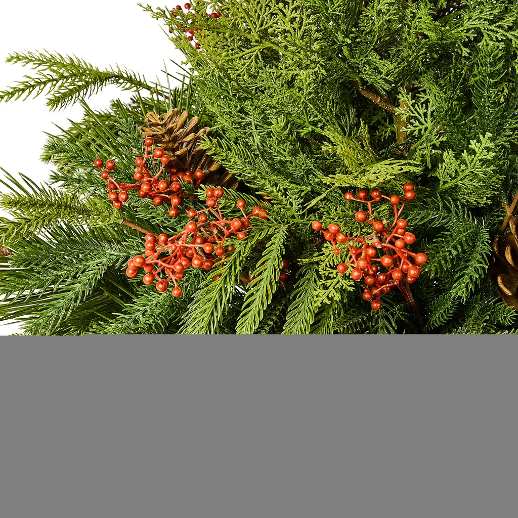 Welcome guests with the beauty of our Holiday Cedar Tree Urn Filler, designed to bring a touch of natural holiday charm to your front entryway. The perfect pairing for our decorative urns, the soft, feathery texture of faux cedar branches adds a classic element to your outdoor decor.