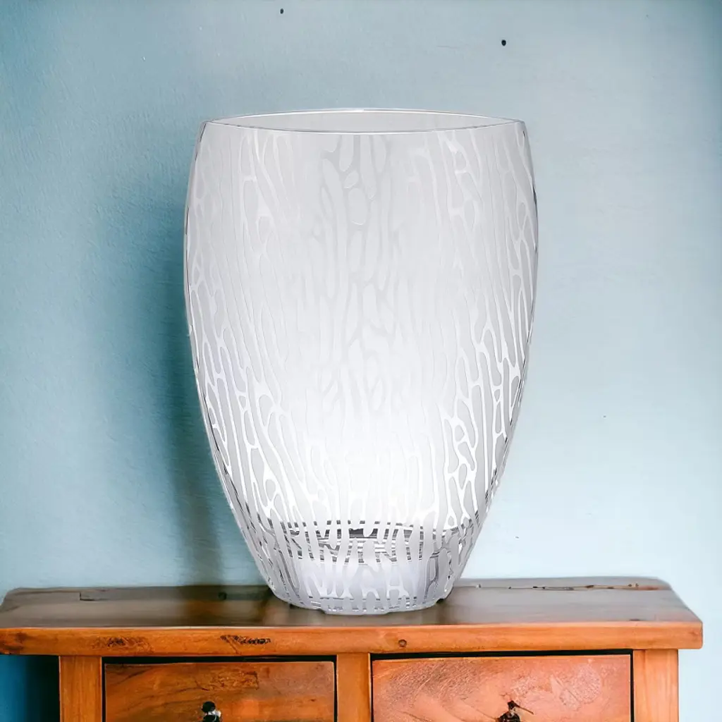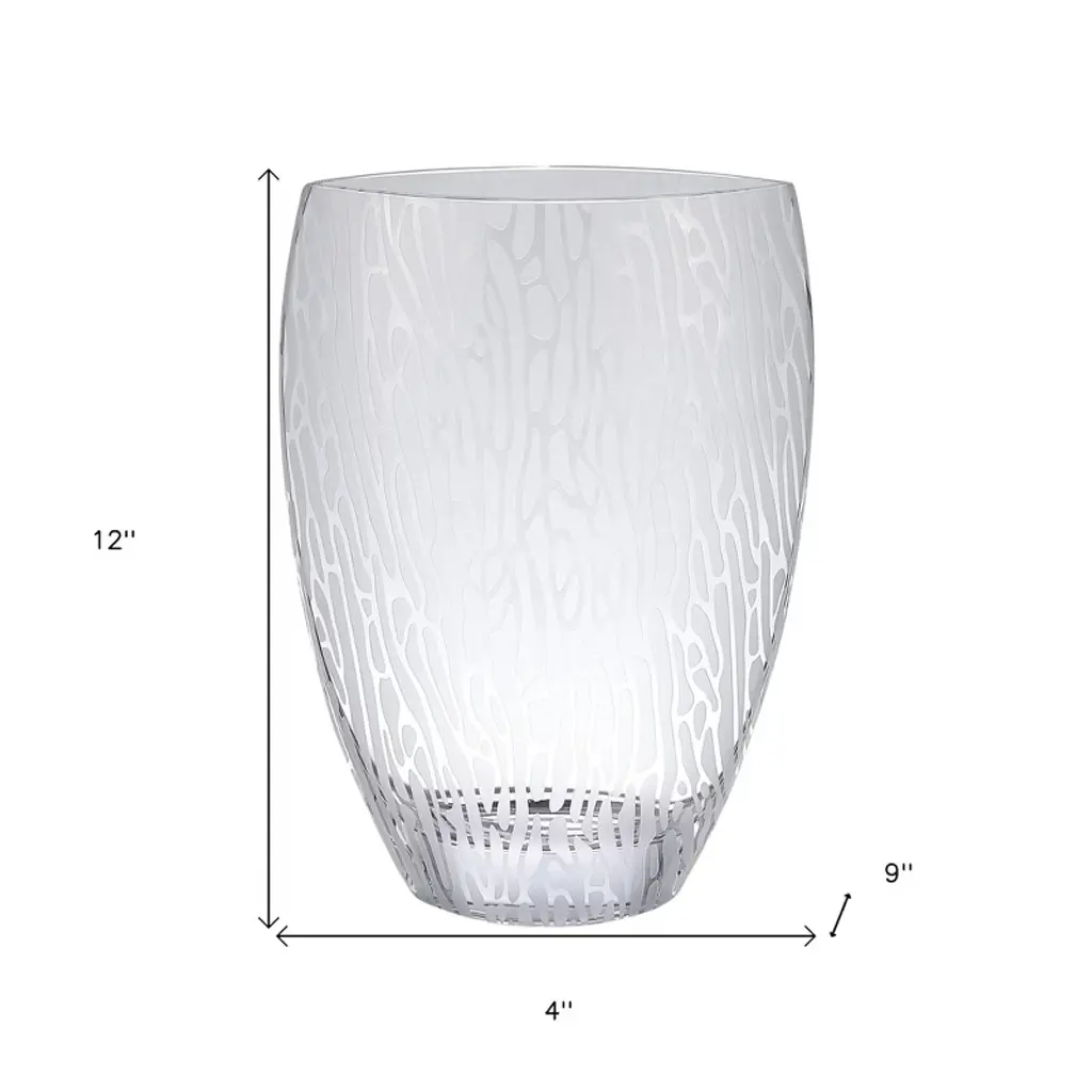 Homeroots 12" Clear And Frosted Abstract Oval Crystal Table Vase