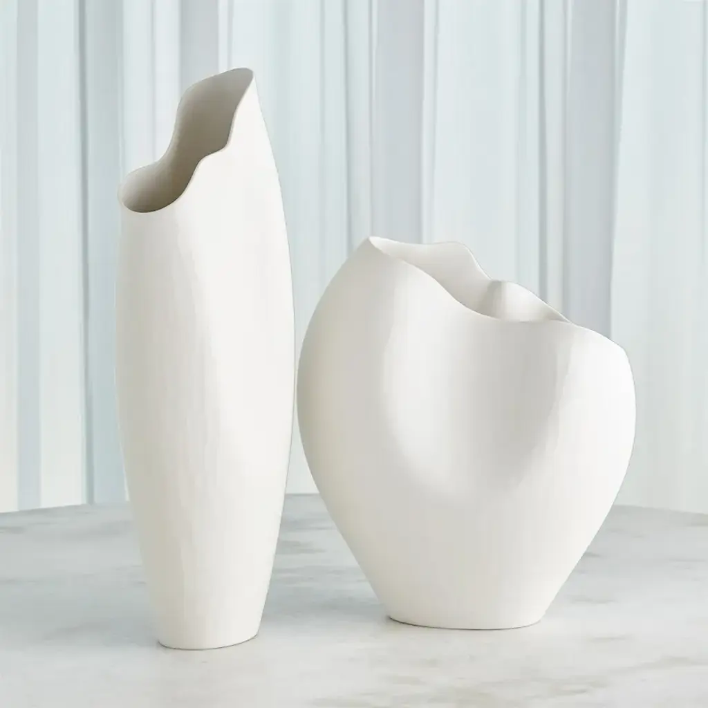 Handcrafted by artisans, the Horn Vases are made of Portuguese ceramic with a matte white finish. From a fashion forward perspective, Global Views offers accessories, furniture, statement lighting, and an assortment of rugs and mirrors to add beauty and joy to your home.