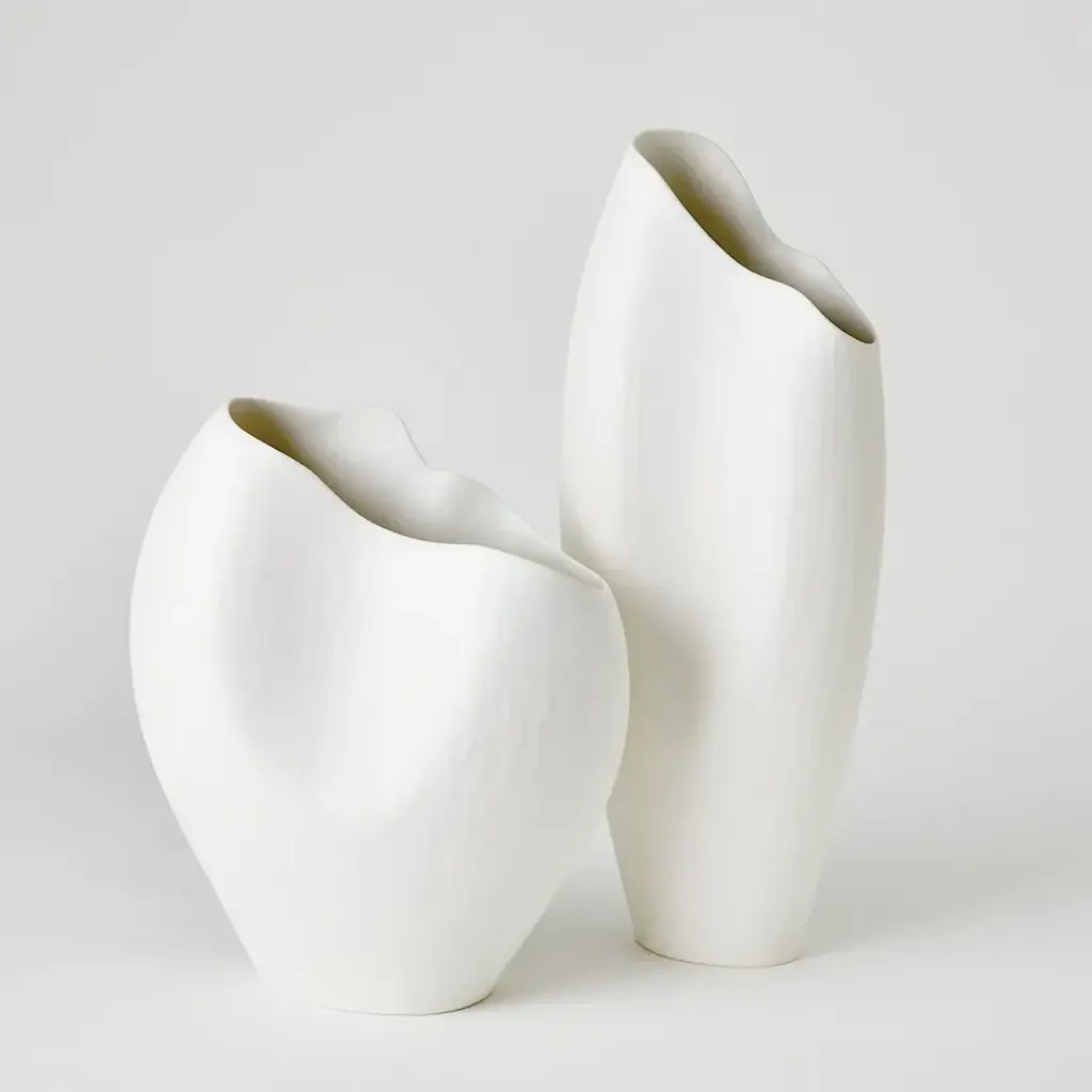 Handcrafted by artisans, the Horn Vases are made of Portuguese ceramic with a matte white finish. From a fashion forward perspective, Global Views offers accessories, furniture, statement lighting, and an assortment of rugs and mirrors to add beauty and joy to your home.
