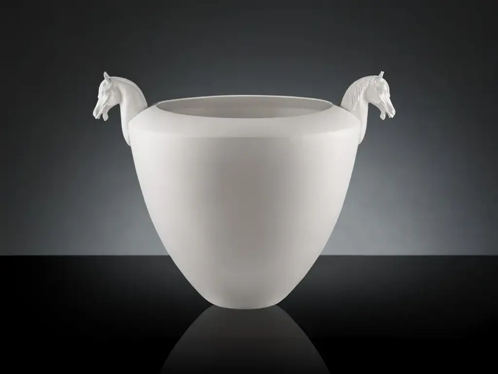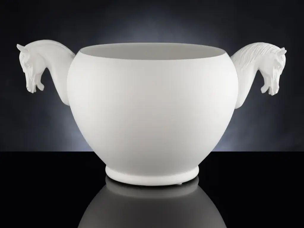 Boasting a white-hued ceramic body with horse-head-shaped handles, this decorative vase makes for a sublime addition to classic interiors. The total-white finish makes it modern and apt to effortlessly blend in any color palette. The entire artisan crafting process ensures its exclusivity and timeless quality.