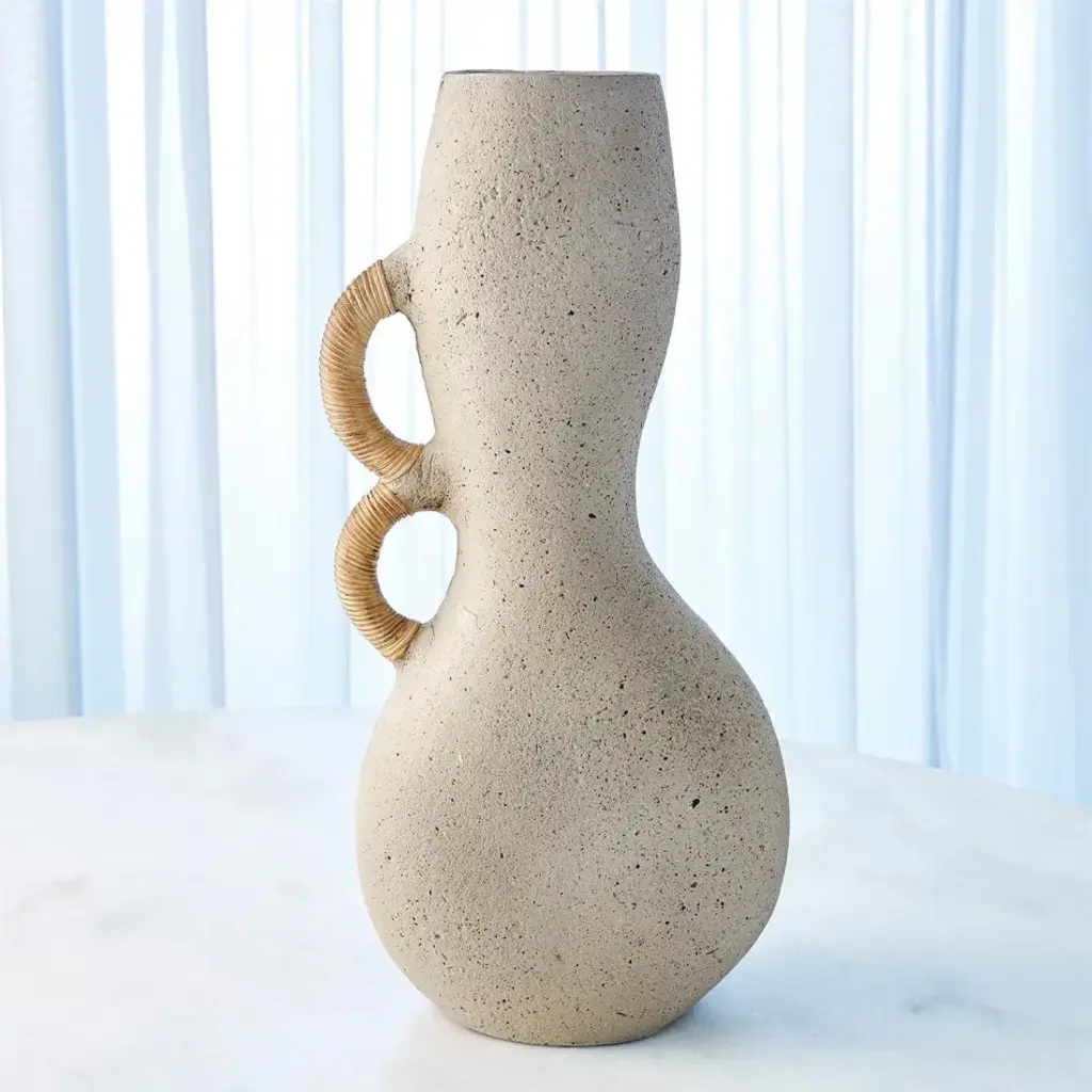 Our Hourglass Vase is made of Ecomix and has rattan wrapped handles. From a fashion forward perspective, Global Views offers accessories, furniture, statement lighting, and an assortment of rugs and mirrors to add beauty and joy to your home.