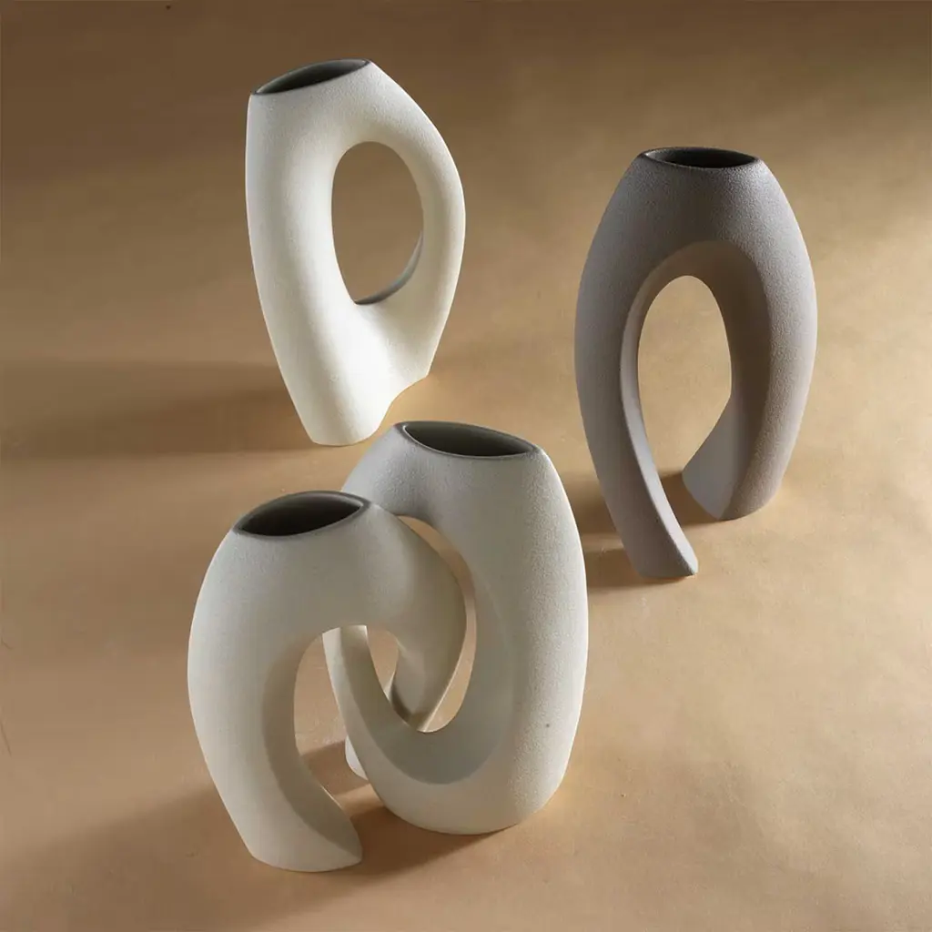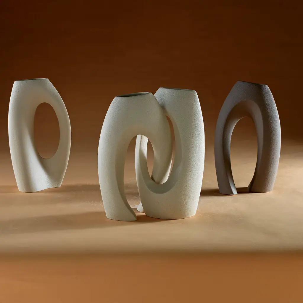 Two vases, two individual forms uniting by one stepping through the other. They come together in an embrace like two bodies that support each other and combine to create a wonderful ceramic sculpture. A metaphor for romantic love, for that feeling that elevates two people to a higher level when they are together.