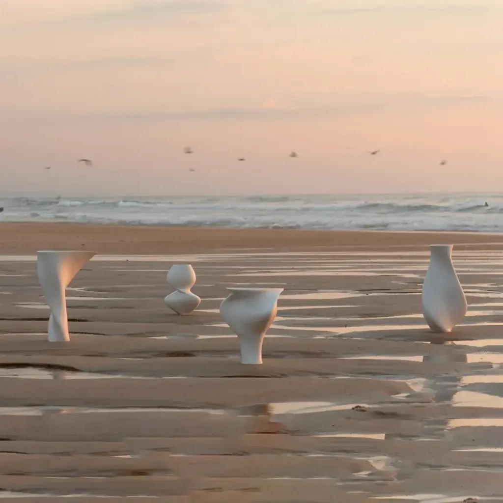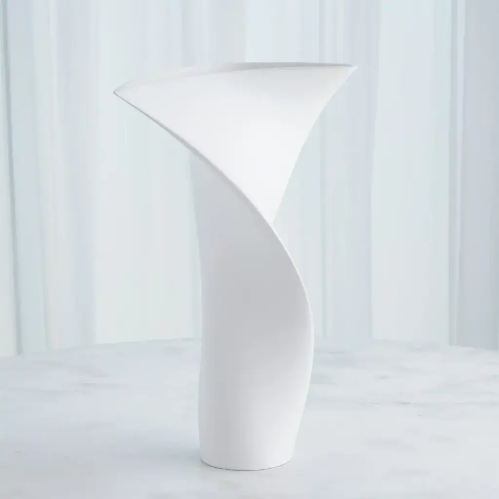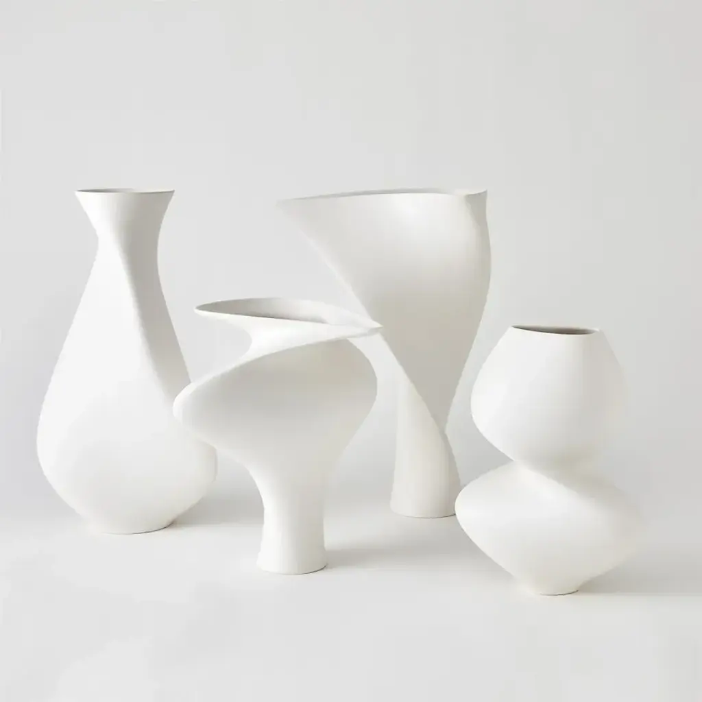 Global Views is proud to be the first manufacturer in the United States to present the latest technology in home decor: a sound-made Portuguese ceramic collection. The process begins with recording an amazing voice in a spaciously beautiful monastery in Alcobaca (pronounced al-ku-ba-sa), Portugal. A computer program first maps the coordinates for the base of the design and then allows the sound of the voice to create the shape that builds from there. Once completed, the digital design is 3D printed into a mold that's used to create slip-molded ceramic vases. You'll notice that the vessels are only available in a white finish as a tribute to the monastery's Cistercian aesthetic, which prohibited all colored and patterned stained glass. Only colorless stained glass was allowed for light to pass through as clean, pure, and white providing tranquility and calmness. From a fashion forward perspective, Global Views offers accessories, furniture, statement lighting, and an assortment of rugs and mirrors to add beauty and joy to your home.