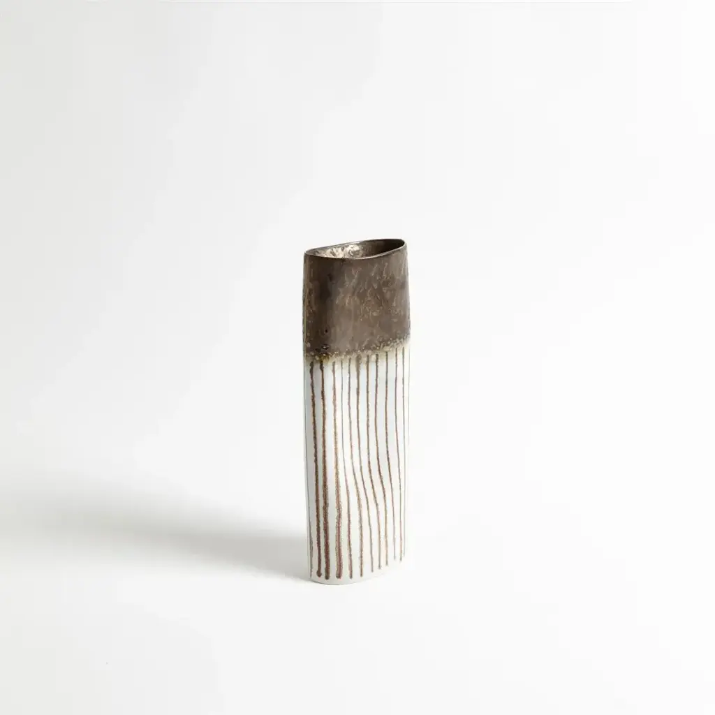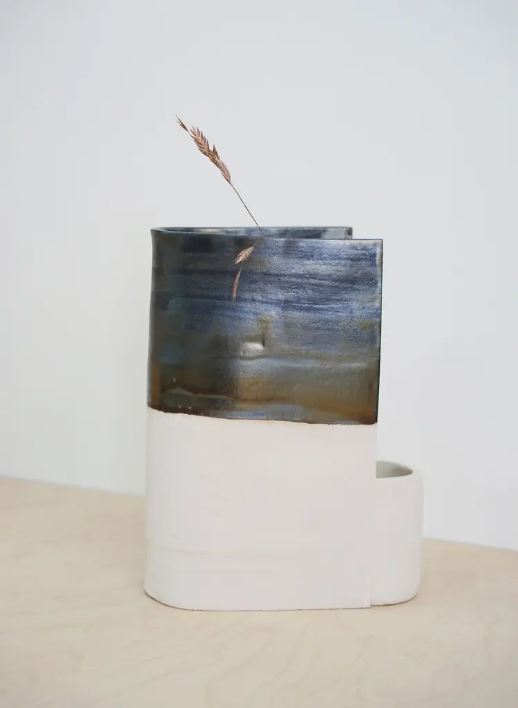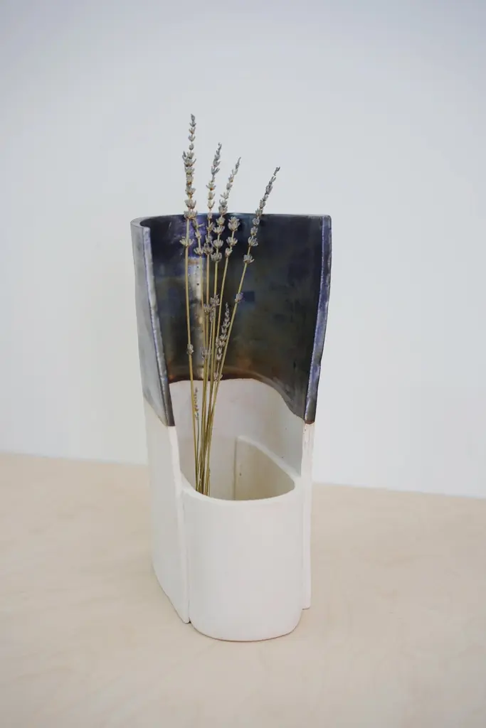 HYDRA_Doki_06 Vase by Emmanuelle RouleUnique piece.Dimensions: Ø 25 x H 32 cm.Materials: Stoneware.Vase made of white stoneware, parcially glazed with effect reflections. Not waterproof. Please contact us.Creative studio founded in 2007 in Paris.Curious about new projects and encounters, the studio is characterised by a multidisciplinary dimension : design, art direction, space and contemporary art.Experimentation, research and fun."I work through research and experimentation with clay material. I have a specific approach to design and in the act of making, through multidisciplinary thoughtand using an empirical method whereby the material and its intrinsic properties (as well as the process of transformation) hold a central place in its conception.Working with clay raises the question of a perpetual back and forth between an ancestral material, an inherited savoir-faire, that has been transmitted from the past and its inscription in the contemporary creation as a material of multiple uses, with a strong environmental and sustainable dimension.On the border between crafts and contemporary art, its objects, sculptures and installations have a strong architectural dimension and question our relationship to the environment, to the territory and to the environment."