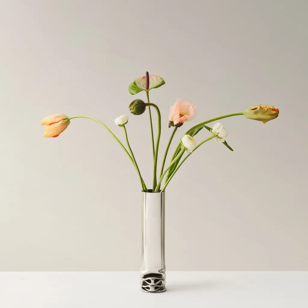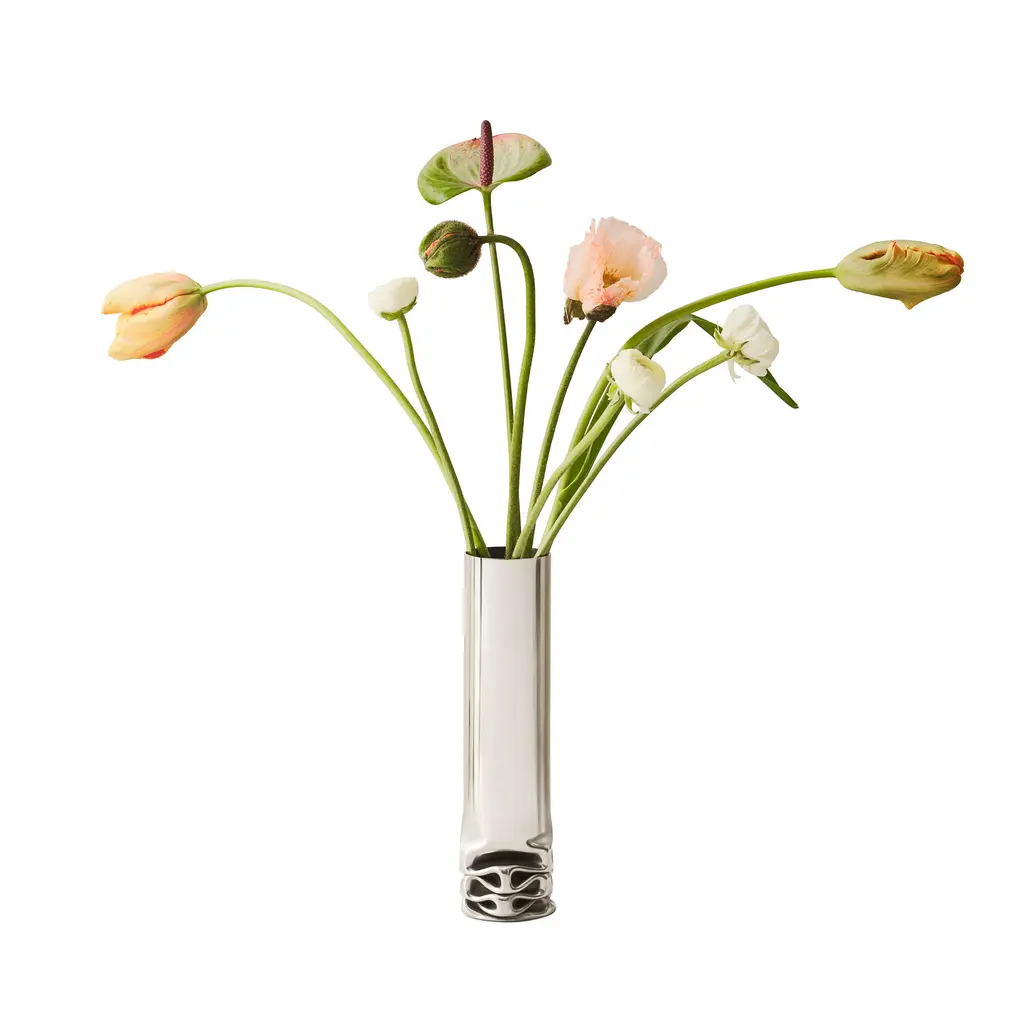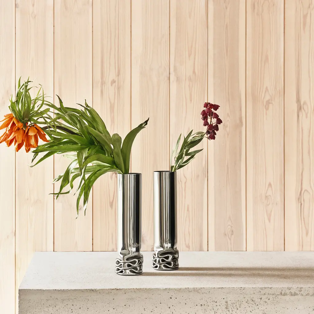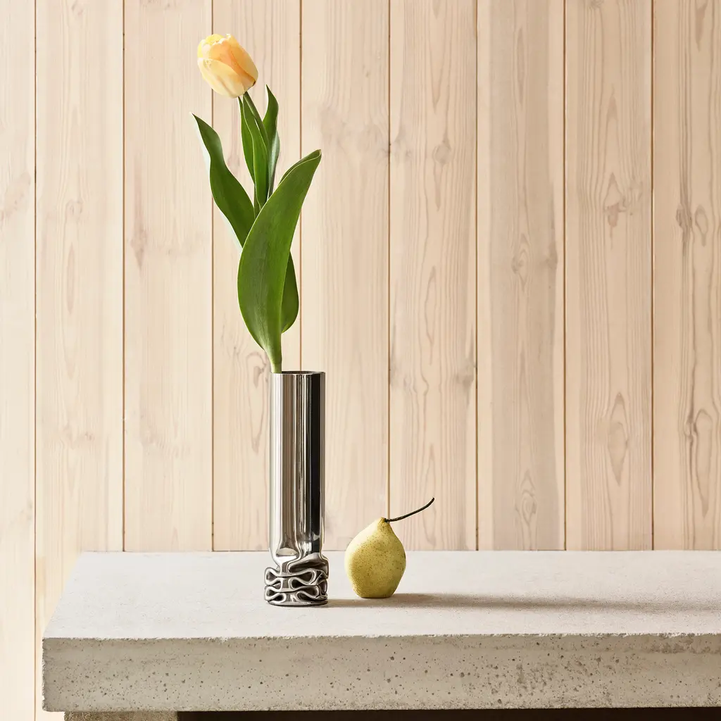 When looking for home décor with visual impact, you’d be hard-pressed to find one more eye-catching than the Hydraulic Vase. Created by designer Isa Andersson for Design House Stockholm, this stainless steel vase toes the line between craft and art. Like its name suggests, the vase is made with a hydraulic press. Manufactured one by one, these distinctive vases are each one-of-a-kind and feature uniquely formed bases. The polished stainless steel material highlights the winding lines of the pressed bottom, as well as the contrasting smoothness and perfect cylindrical form of the rest of the vase. Use the Hydraulic Vase to create focal points with beautiful flowers on a dining table, a side table in a living room, or shelf in an entryway. Alternatively, use this vase on its own as a contemporary sculpture.
