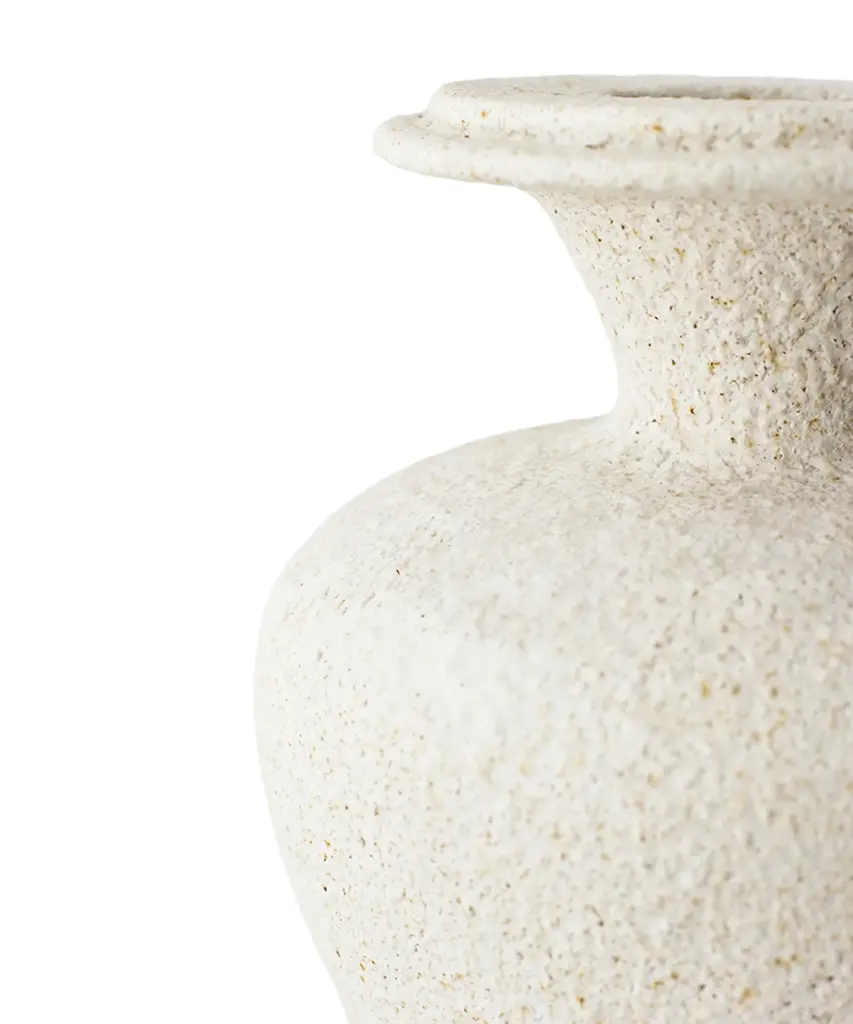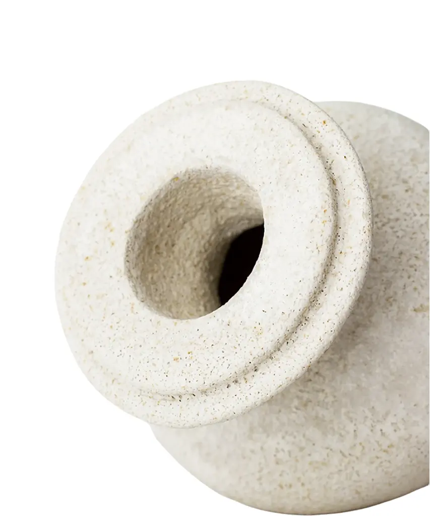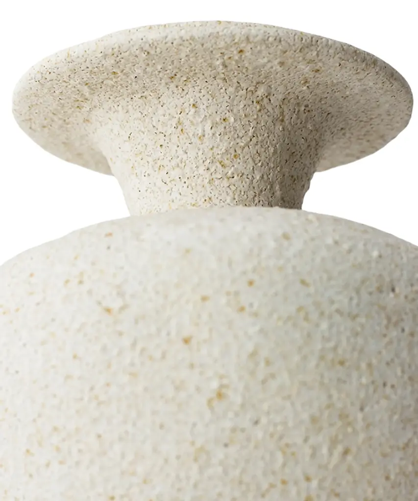 The N.3 series results from analyzing the different types of vases found in the Mediterranean basin, especially from Ancient Greece and Rome. The collection combines ancient forms and shapes with experimental surface treatments featuring glazes and contemporary elements. These pieces are made of stoneware with grog from Manises (Valencia), using the plaster casting technique. Their surfaces are obtained by applying self-formulated glazes in various layers. The stoneware vase in handmade to order by the Valencia-based studio, Canoa Lab.