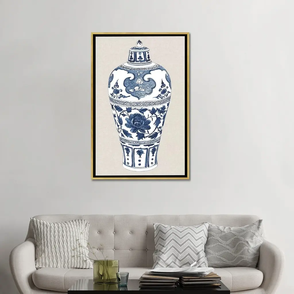 Icanvas "Antique Chinese Vase I" By Melissa Wang Framed Canvas Print - Gold - 26x18