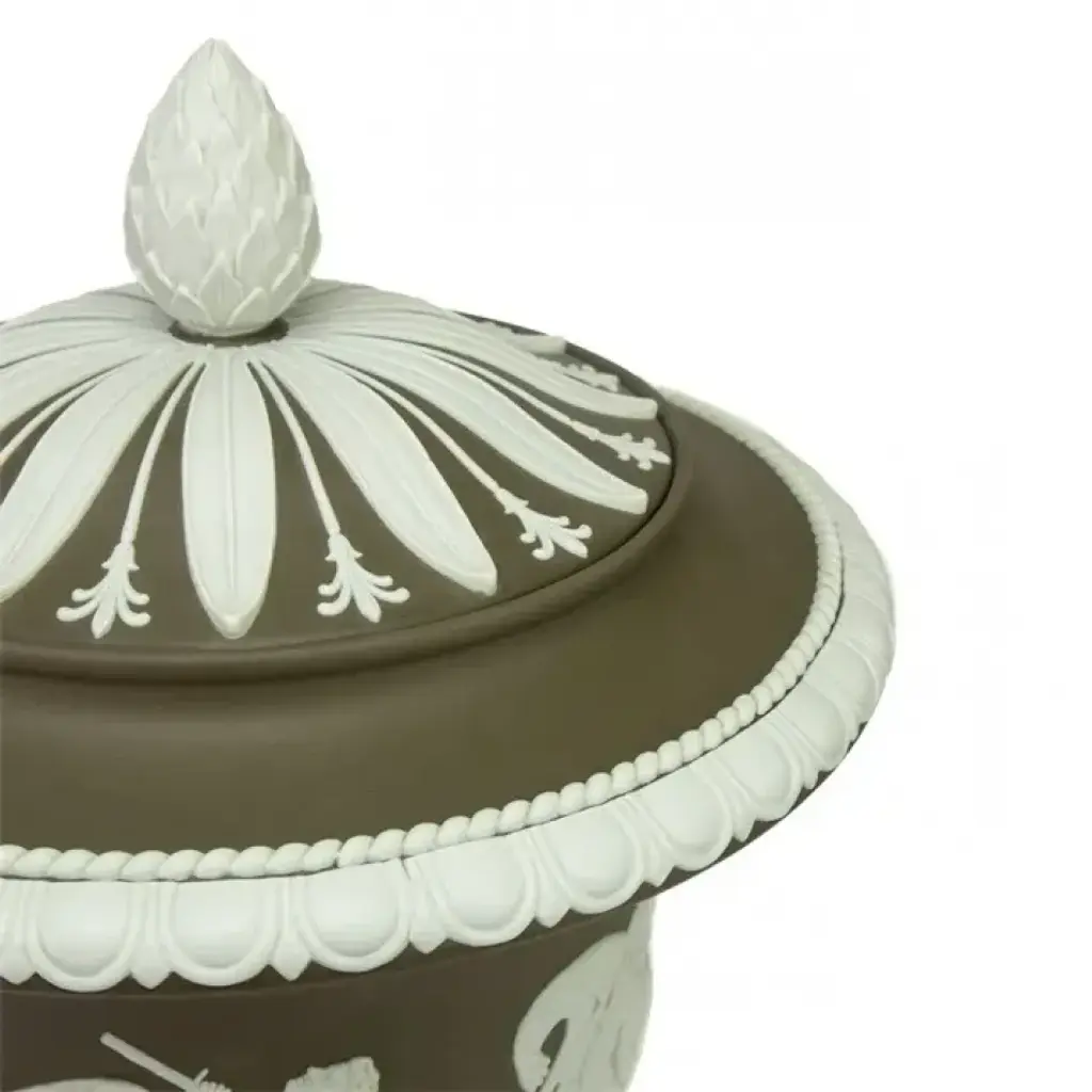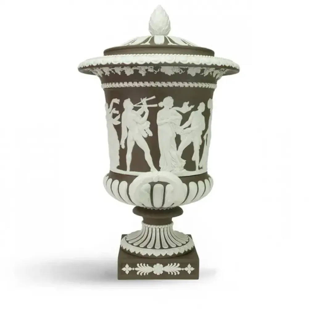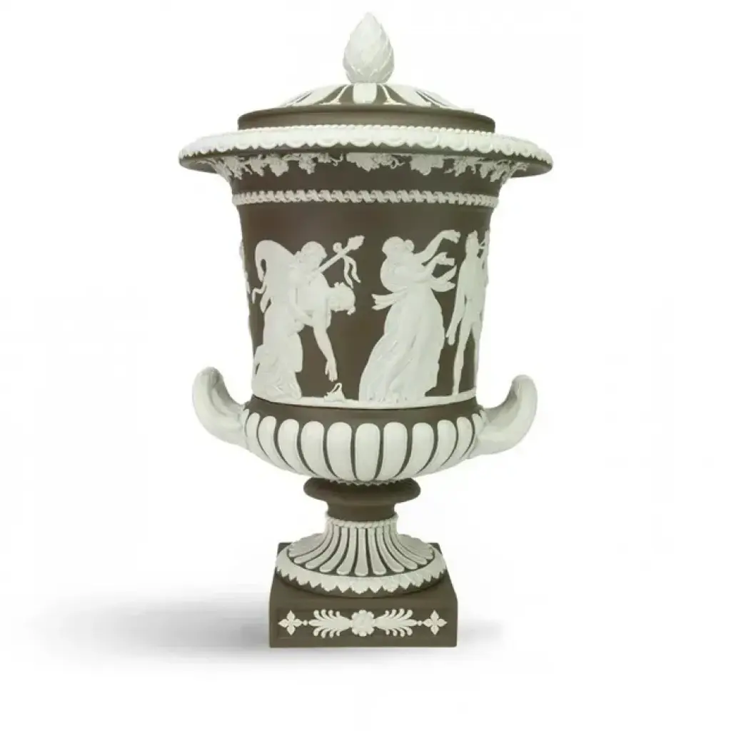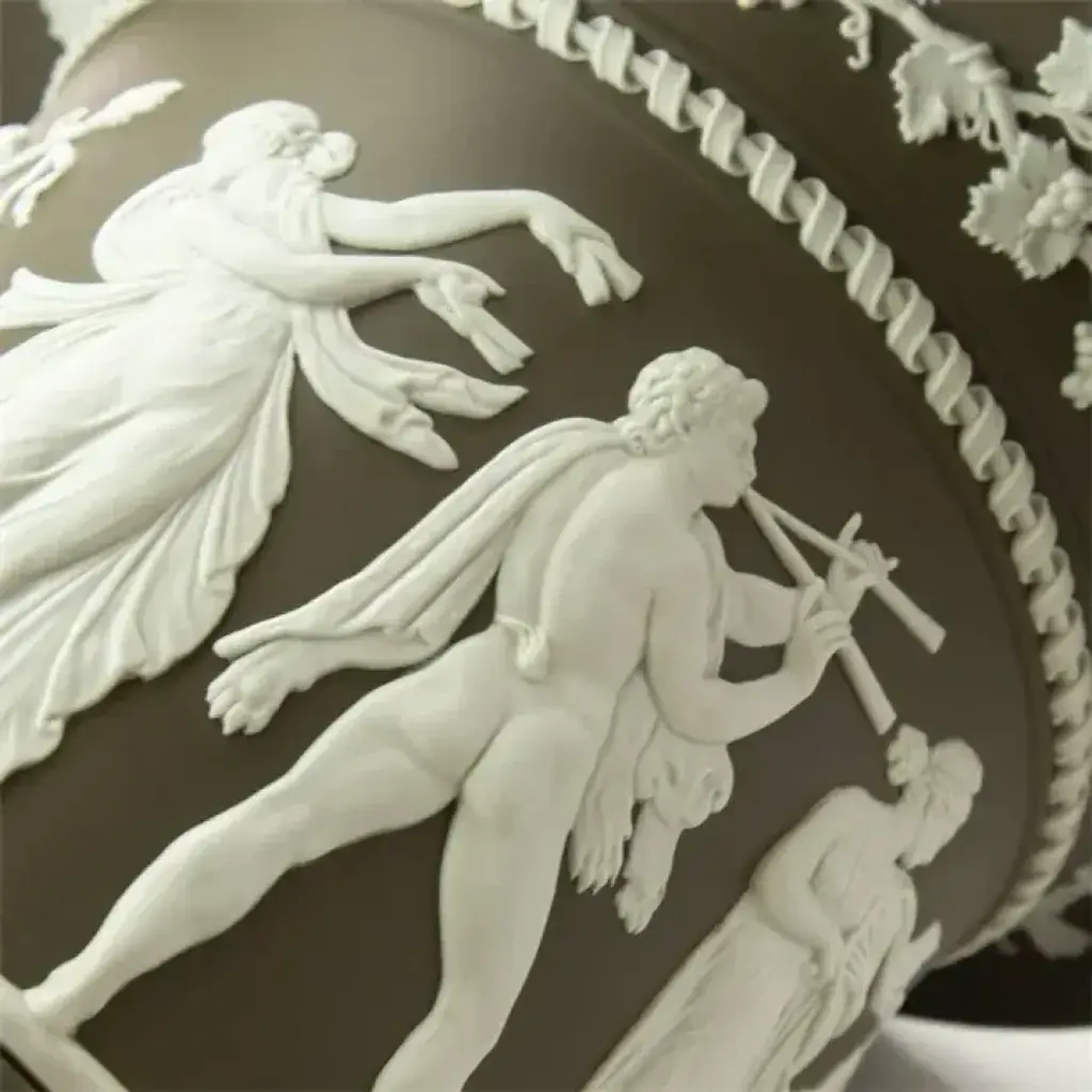 Celebrate the timeless artistry of Wedgwood with the Iconic Borghese Vase. Expertly handcrafted from Jasperware by seven highly skilled craftspeople over 30 hours, this limited-edition vase features intricate bas-reliefs depicting Bacchus and his followers engaging in their revels. A luxurious addition to any space, only 10 of these highly collectible designs will be made.