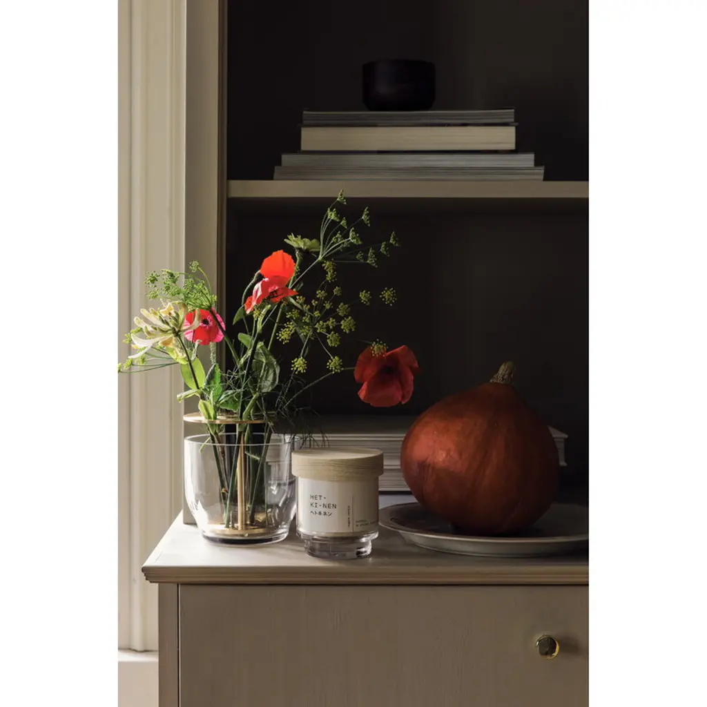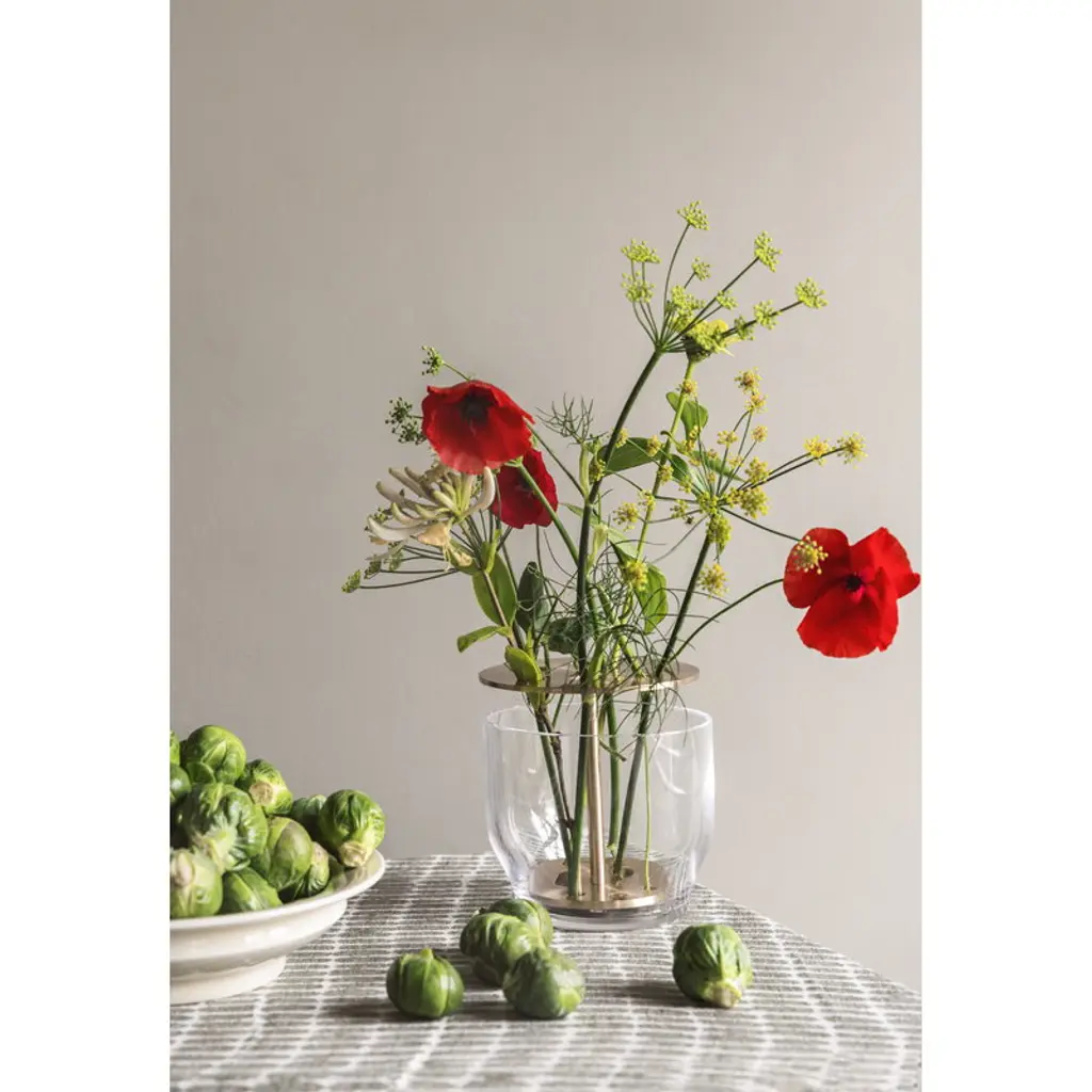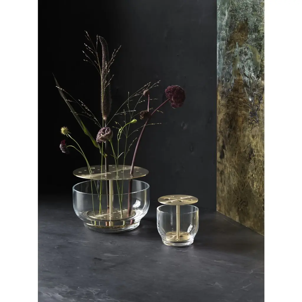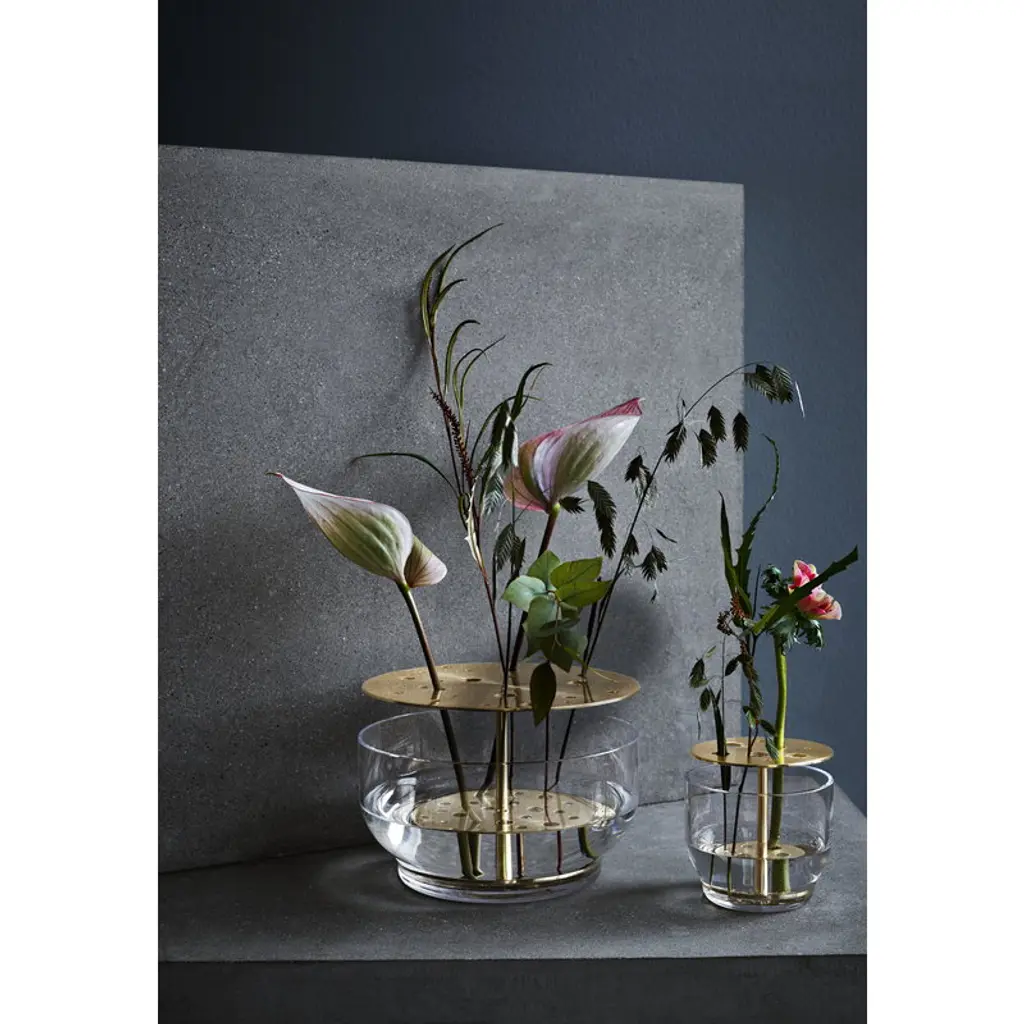 Fritz Hansen’s Ikebana vases, designed by Jaime Hayón, were inspired by the traditional Japanese art of flower arrangement. Hayón’s idea was that you should be able to enjoy the whole flower, not just the blossom: the ingenious design features a mouth-blown glass vase with a brass insert that can be used to arrange the flowers as desired. You can choose whether you want to create a big, lush bouquet or only use a few of the holes in the brass insert.
