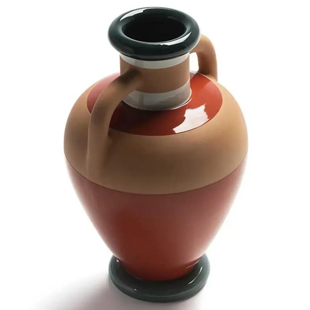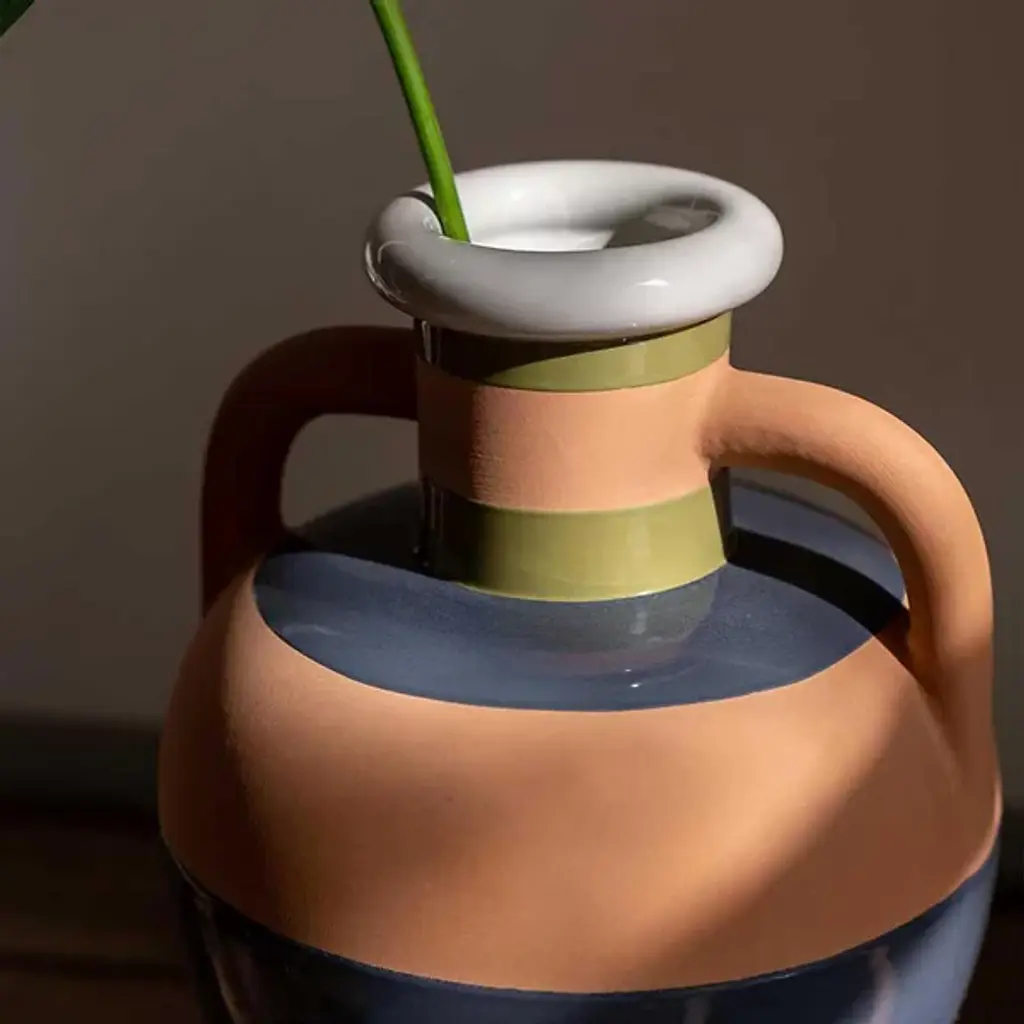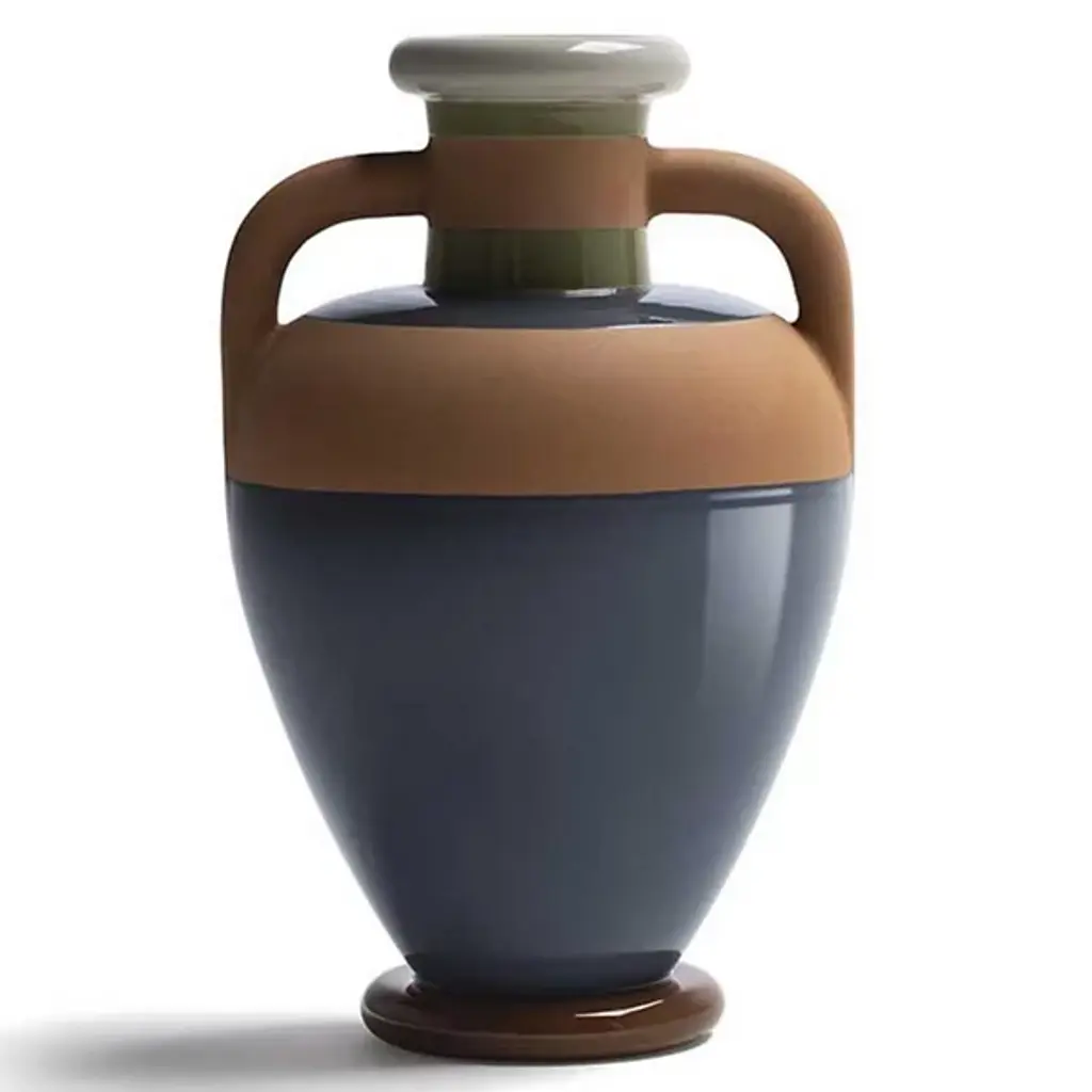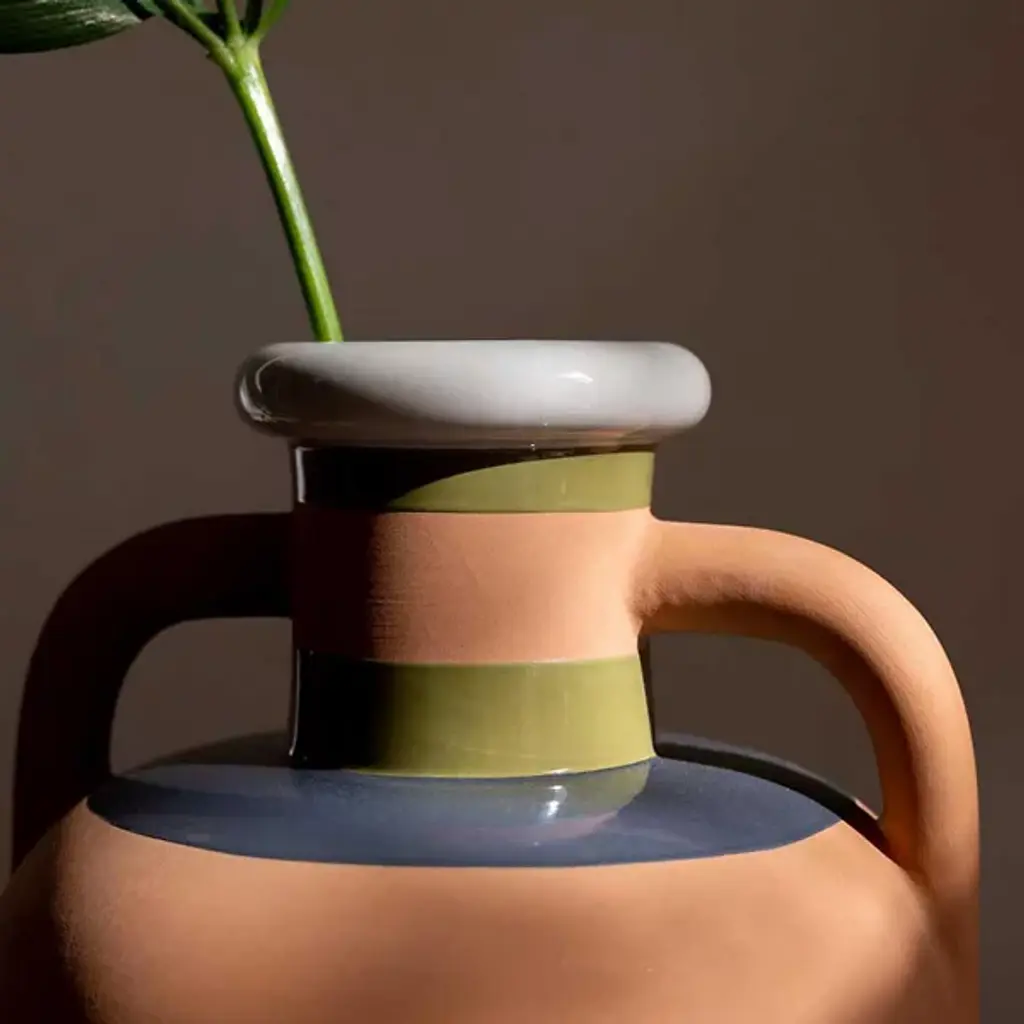 The hand-turned and hand-painted Ikiperu Vase from Poltrona Frau draws inspiration from the shape of ancient Etruscan decorative objects. Its rounded form features horizontal bands that blend glazed and unglazed ceramic, creating a striking multi-sensory effect. The Ikiperu Vase brings timeless elegance to any space with Pelle Frau leather shades.