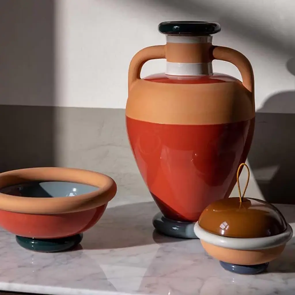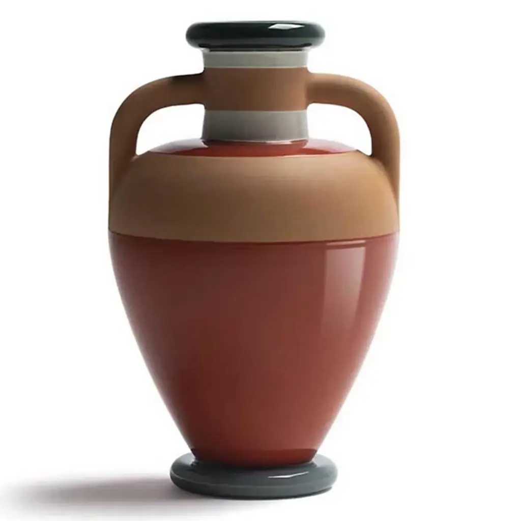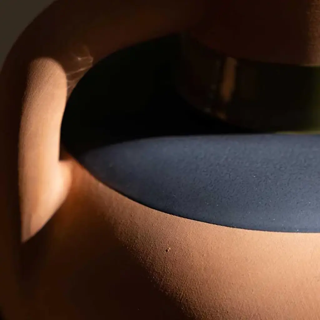 The hand-turned and hand-painted Ikiperu Vase from Poltrona Frau draws inspiration from the shape of ancient Etruscan decorative objects. Its rounded form features horizontal bands that blend glazed and unglazed ceramic, creating a striking multi-sensory effect. The Ikiperu Vase brings timeless elegance to any space with Pelle Frau leather shades.