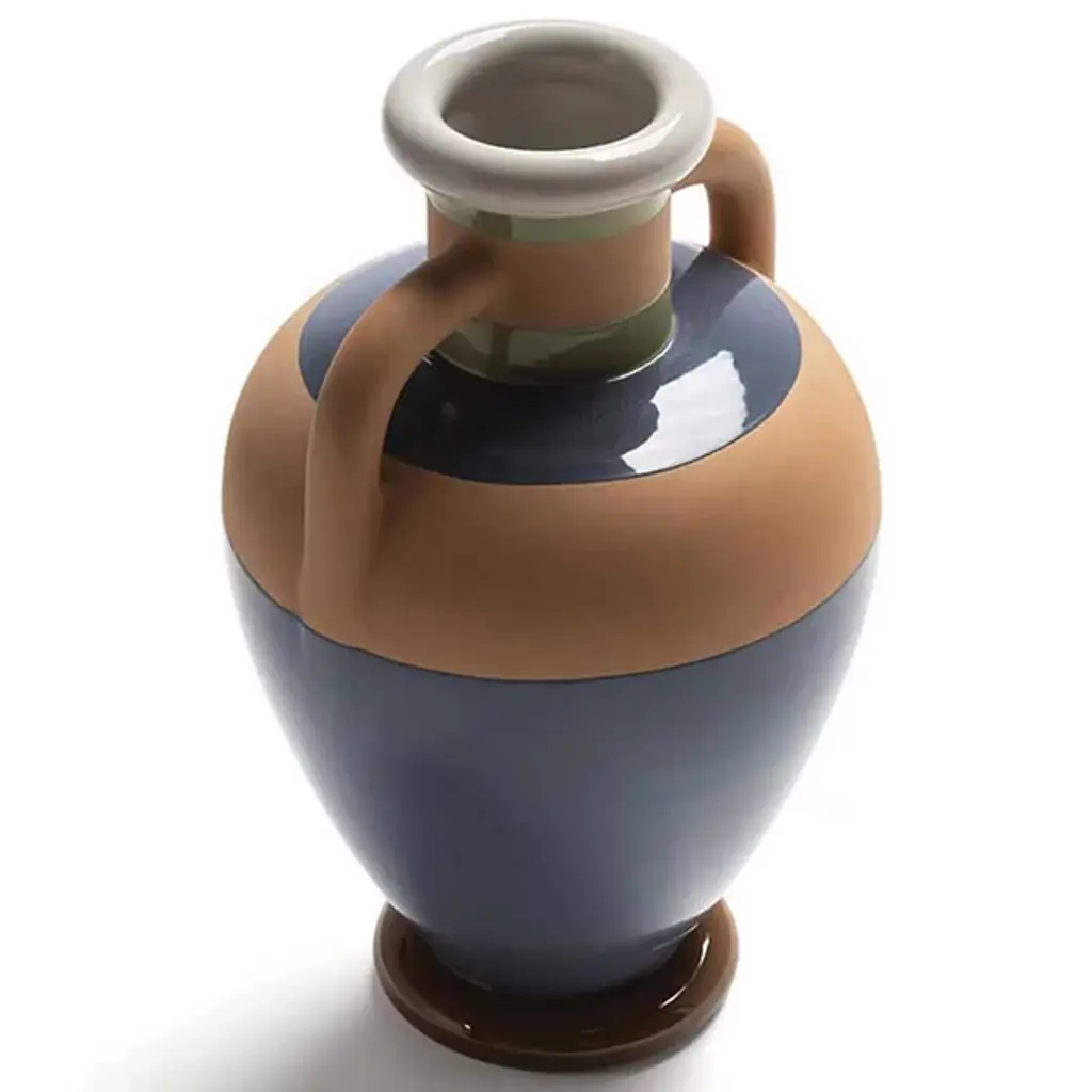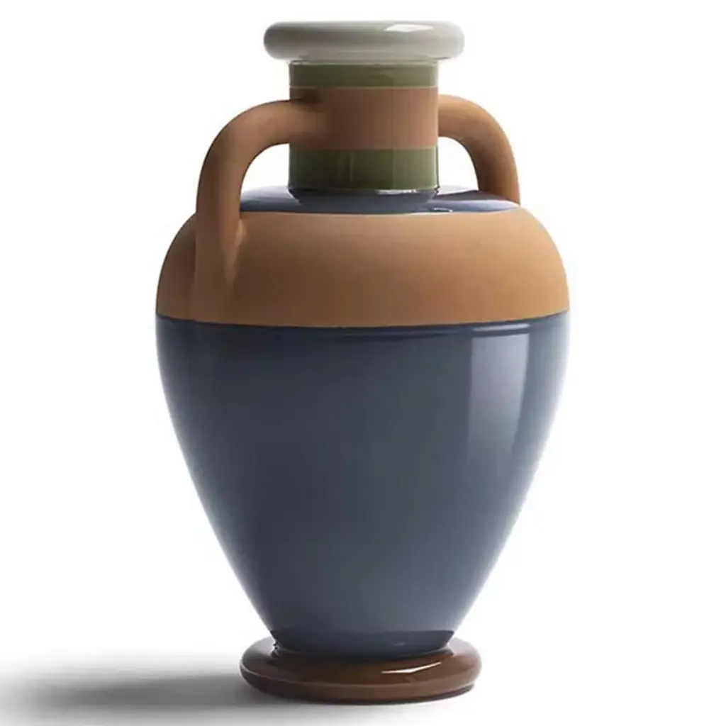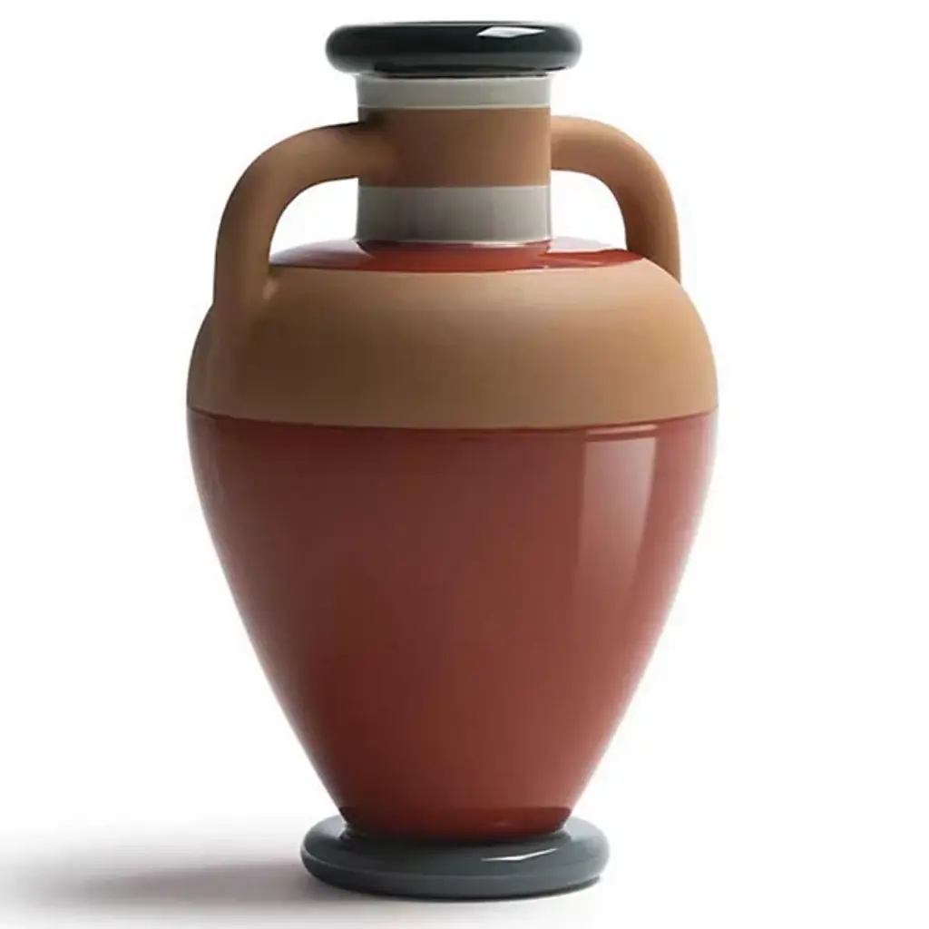 The hand-turned and hand-painted Ikiperu Vase from Poltrona Frau draws inspiration from the shape of ancient Etruscan decorative objects. Its rounded form features horizontal bands that blend glazed and unglazed ceramic, creating a striking multi-sensory effect. The Ikiperu Vase brings timeless elegance to any space with Pelle Frau leather shades.