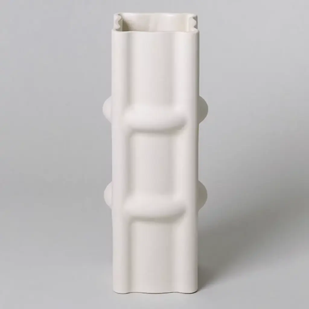 Set Of Two Ceramic Vessels Are Finished In A Stunning Gloss White Glaze. The Varying Vase Heights Create Their Own Beautiful Display Or Can Be Used To House Floral Stems. Sizes: S- 8x8x8, L- 5x10x5