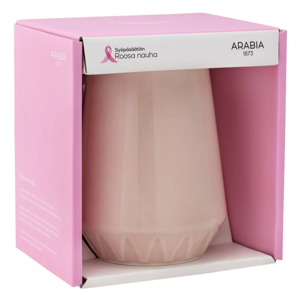 Arabia's Ilona vase offers a delightfully unique home for a variety of flower arrangements, from roses and carnations to wild meadow flowers. The porcelain vase features a triangular embossed pattern around the base, adding a playful touch to its otherwise simple, modern design. The pink Ilona vase is part of the Pink Ribbon special collection, which supports breast cancer awareness and Finnish cancer research. For each product sold, Arabia donates one euro to the Finnish Pink Ribbon campaign.