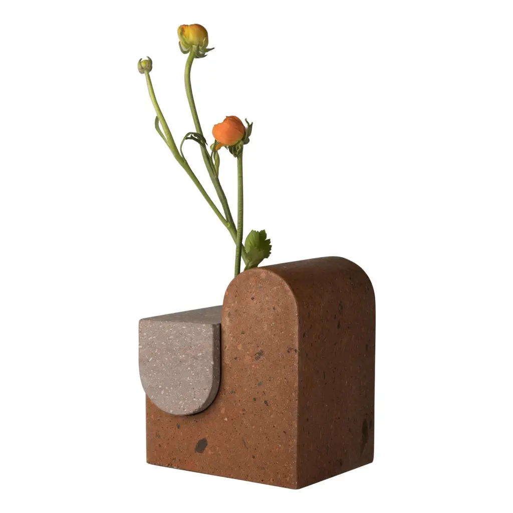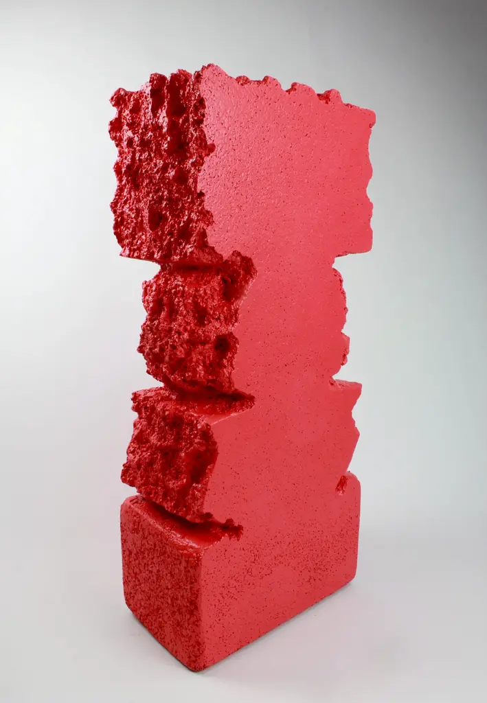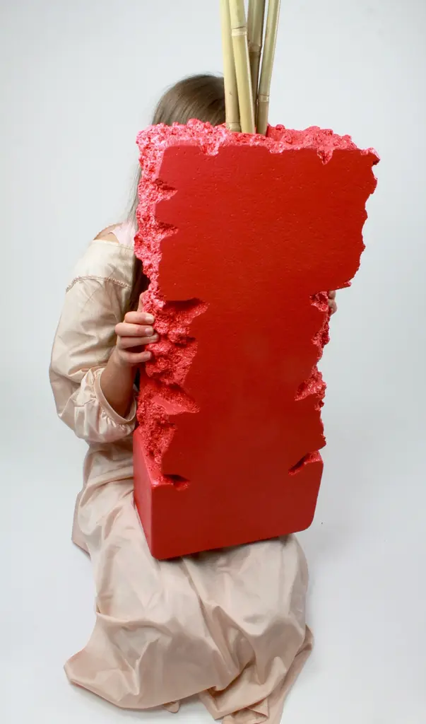 I'm Floating III Vase by Louise Bankander One of a kind, signed, 2022. Dimensions: 28 x 16 x 63 cm. Materials: Cork. The size differs from piece to piece. Variations are to be expected. A glass cylinder is included with the sculpture vase. Please contact us. In Floating Sculpture, the artist is somewhat brutal in the sculpturing and colouring of the artwork. What fascinates her is the process of creating heaviness and force in a light material which gets sealed in by a hard shell of varnish. Her workplace is in Hornstull/Stockholm. In a world of shapes, she imagines pictures and fantasies which materialize during the process of building, sewing and sculpturing. She works broadly in the areas of art, fashion and photography. She works with different materials, e.g. acrylic glass, textile and wood. Currently, she is tied to cork. Exploring the properties of a material in a mental state of courage, enthusiasm and happiness leads to her artworks. The artwork is inspired by the raw structures you can find in nature and by different artifacts such as buoys and fishing floats.
