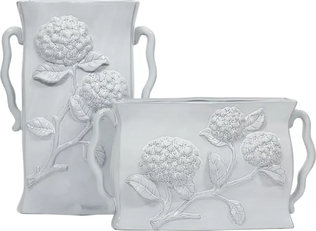 Our Imelda vase is timelessly classic. This piece is expertly crafted from 100% white- finished stoneware and is elegantly embellished with dimensional handcrafted flowers. Available in either a 12-inch or 17-inch height, this piece promises to bring a refined touch to your unique design. Choose your size before adding to cart.