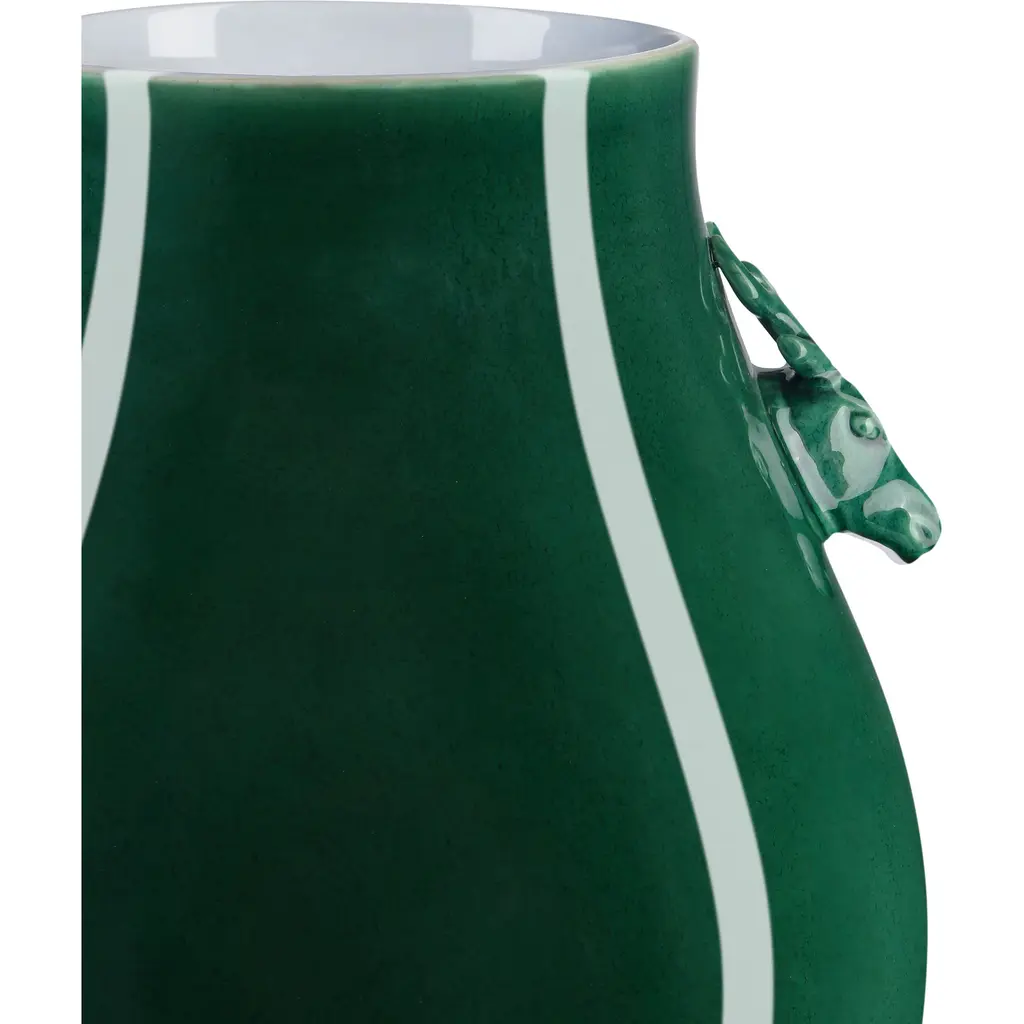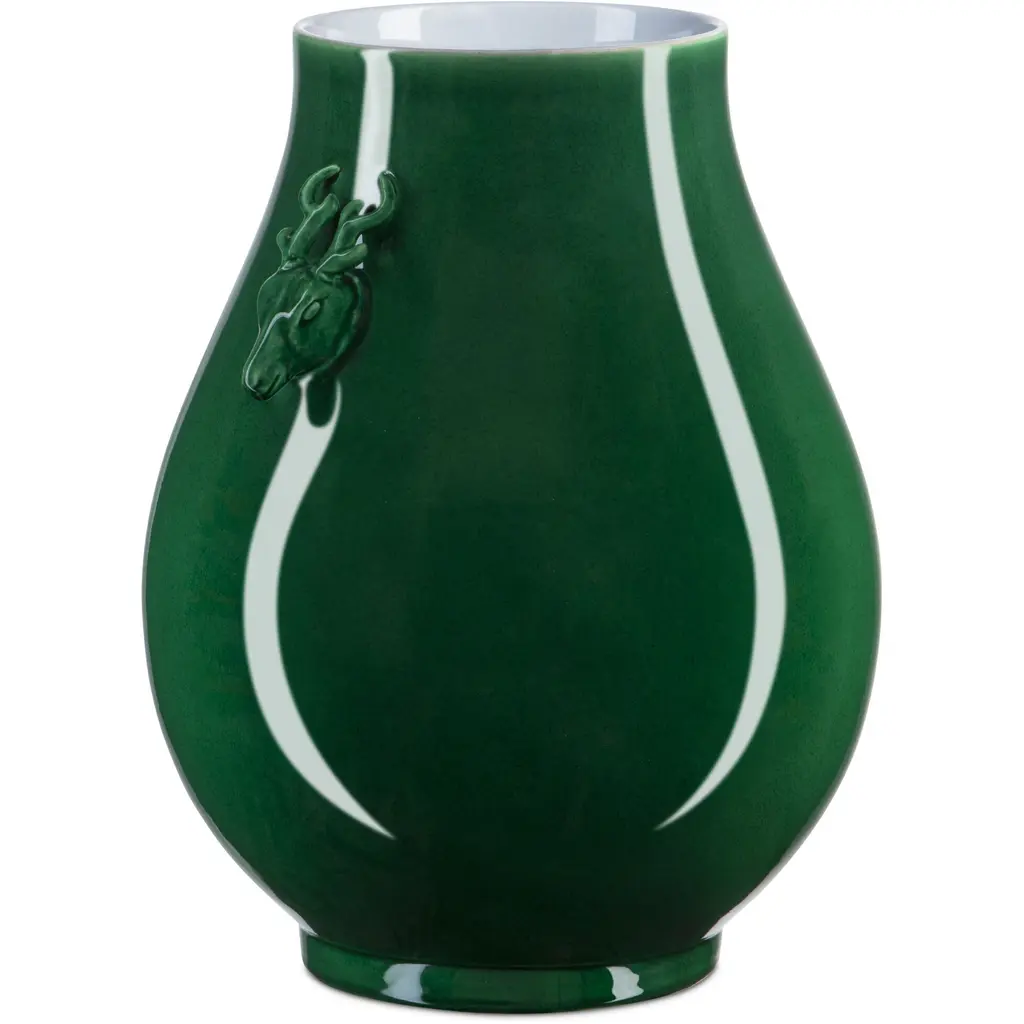 The Imperial Green Deer Ears Vase is a decorative green vase that has its roots far in the past. The Imperial label is apropos for the porcelain vase because this piece is made of clay sourced from the area surrounding the kilns that produced objects for the Imperial estate during the heyday of the dynasties. The formulas to achieve the particular green on this vase’s surface is a secret one guarded by ceramicist families devoted to the single color. The deep green hue was originally produced exclusively for those in high society.