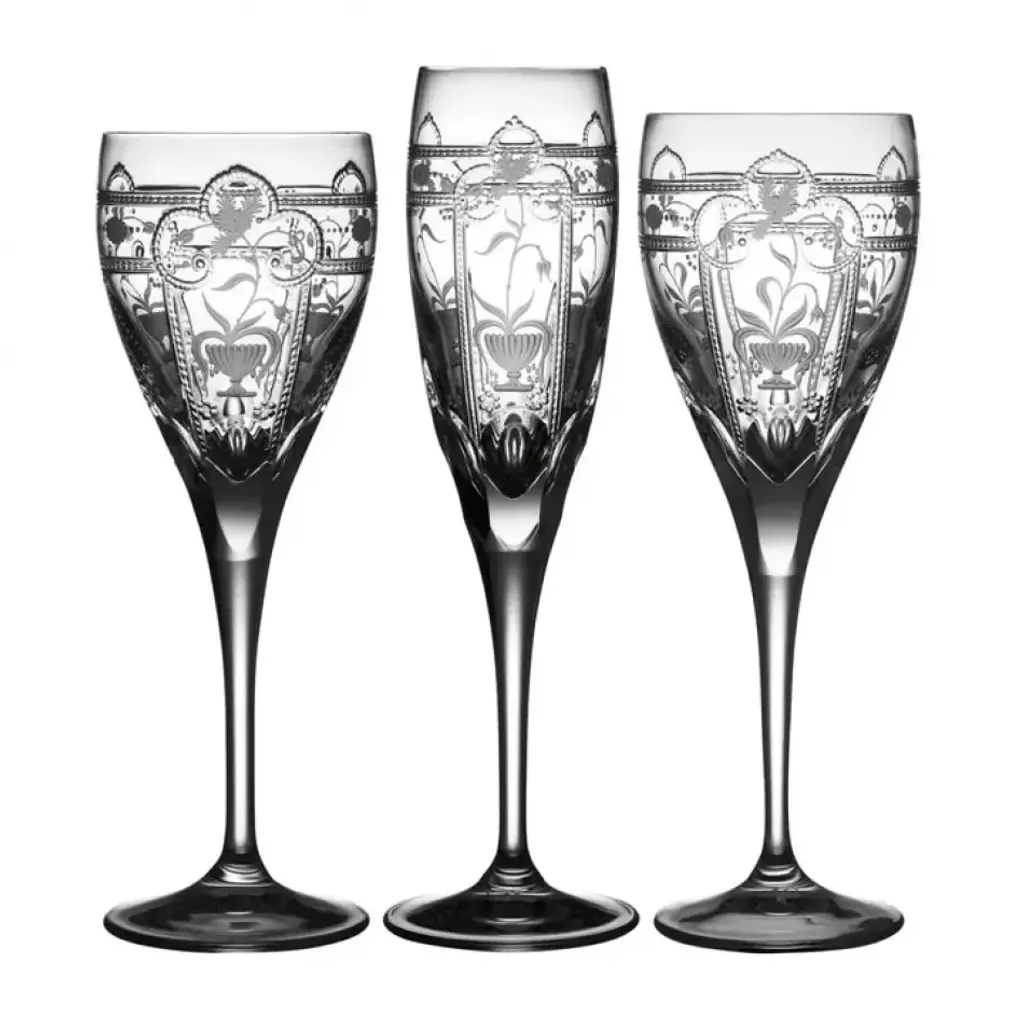 As you look at the Imperial Collection, you sense something extraordinary before you. This sophisticated pattern reveals the peerless talent of the engraver. This collection includes vastly time-consuming, hand-made designs with almost magical solutions, mixing flat cutting, sphere engraving and lifelike engraving techniques. Art aficionados applaud the superb craftsmanship and distinguished artistry found inherent in every piece of Varga Art Crystal. From the Varga design studios and forty person glassworks in Budapest, Hungary, famous husband and wife team Ildikó and Sándor Varga – a third generation glass master – create crystal artwork that graces palaces, embassies, museums and celebrity homes around the globe. Each piece of Varga is an original – skillfully and creatively crafted entirely by hand. Each hand-cut stem or intricately engraved crystal masterpiece is individually signed by hand and may require months to craft. Imagine an artist moving his canvas against a fixed brush to create his masterpiece: this is the essence of the rare art of copper and diamond-wheel engraving that is practiced today only by a handful of highly skilled craftsmen.