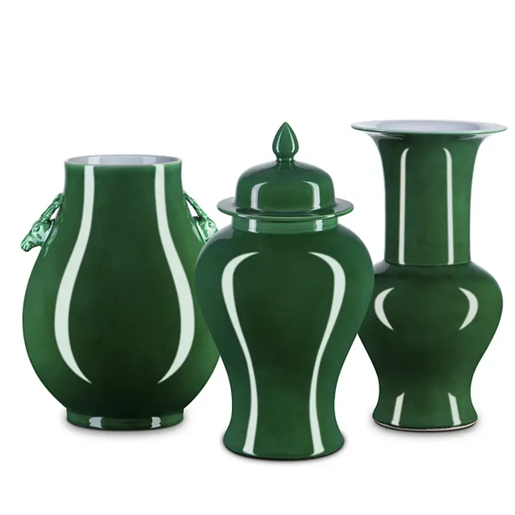 The Imperial Corolla Vase from Currey & Company captures ancient elegance. Its verdant porcelain finish harks back to history, forged from clay near kilns that once graced the Imperial estate during dynastic glory. The deep hue, a secret fiercely kept by ceramicist families, was once reserved for high society. With an aura of exclusivity, this vase embodies the past, infusing a sense of opulence and refinement into modern interiors and adding a touch of mystique to any space.