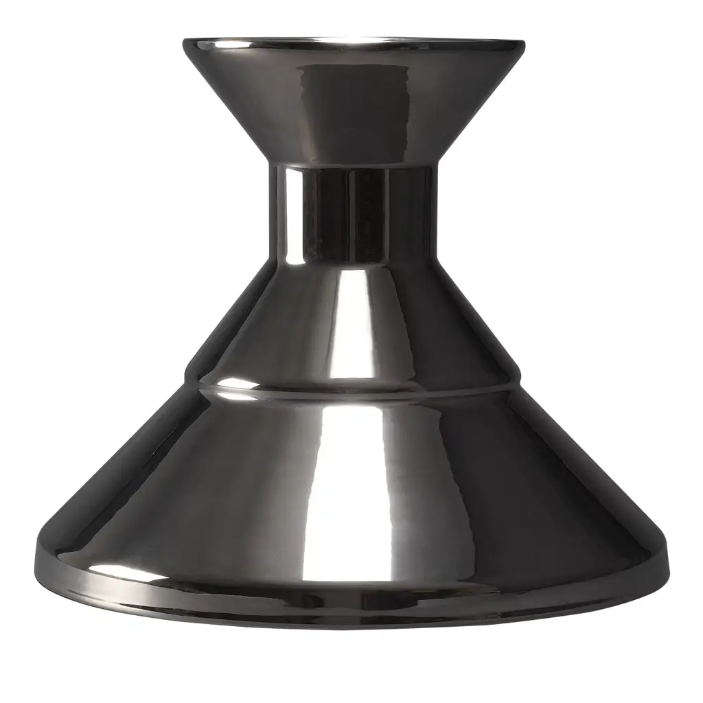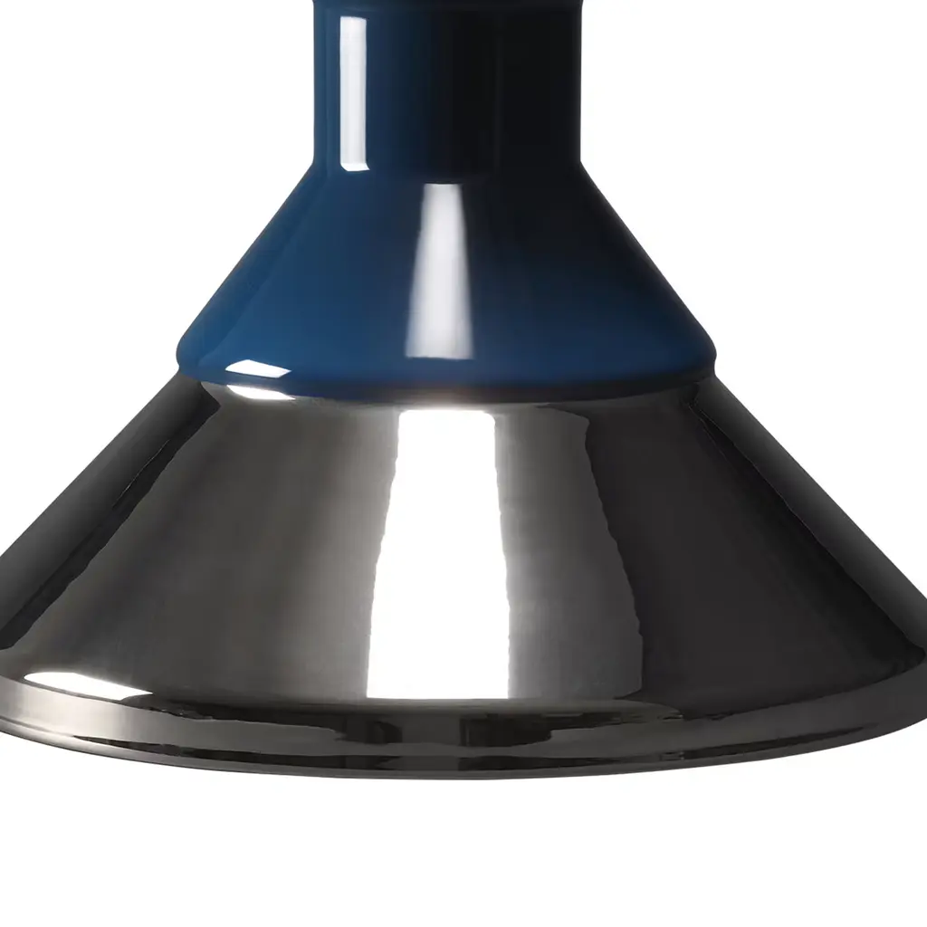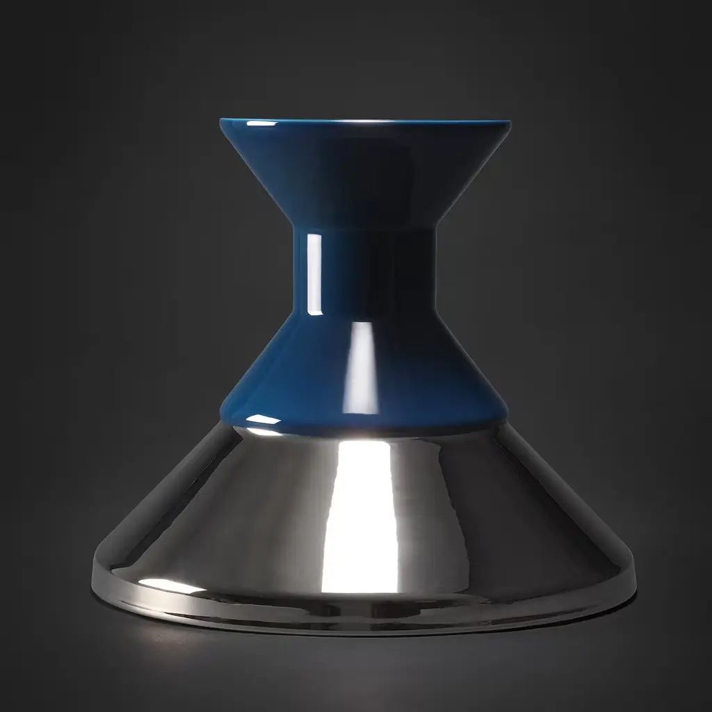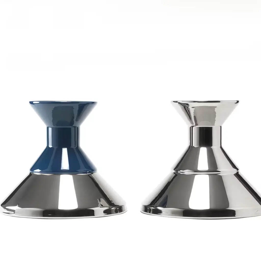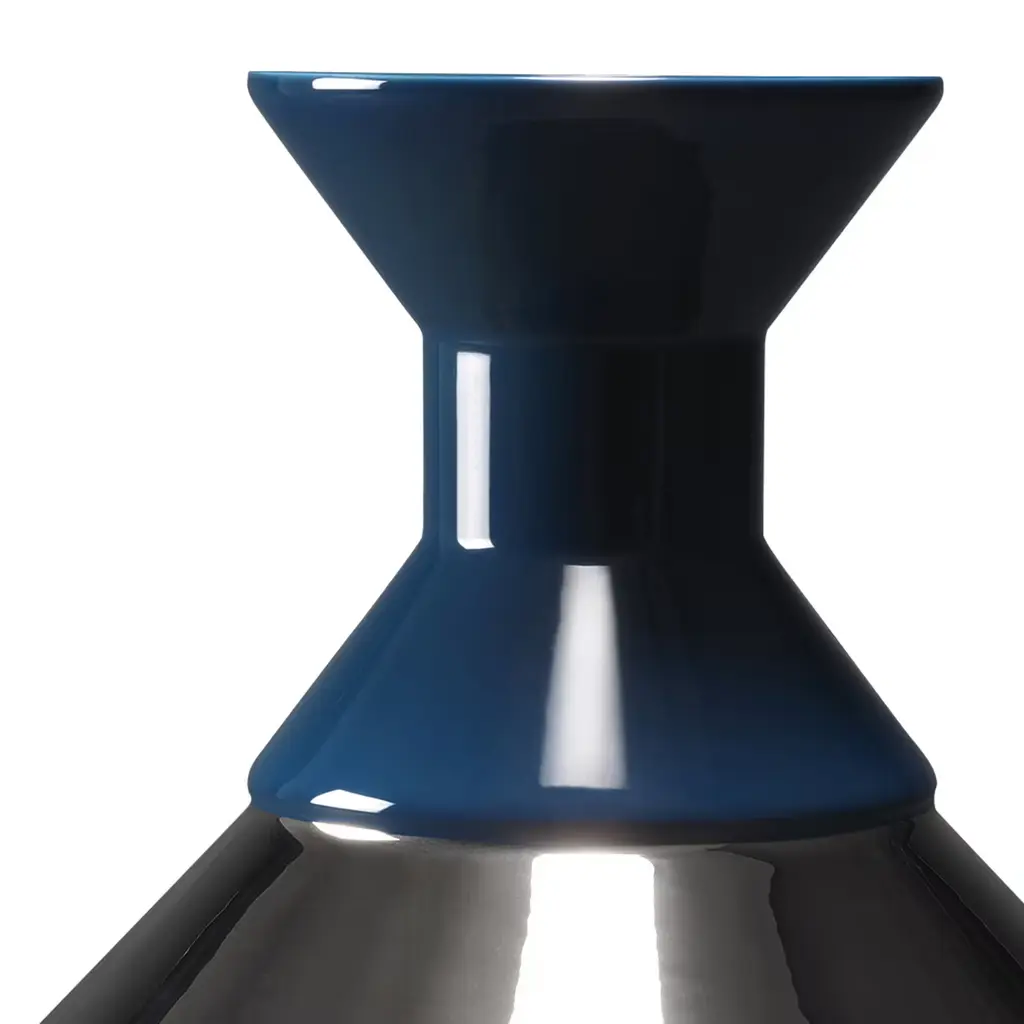 This elegant ceramic vase features a geometrical and minimalist shape with two connected cones of different sizes: the bottom has a platinum finish, while the top has a dark-blue color.
