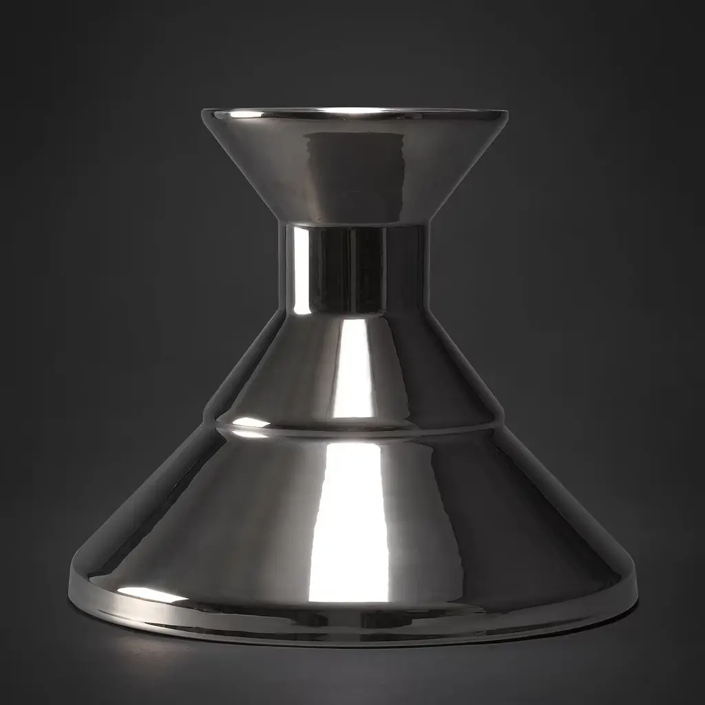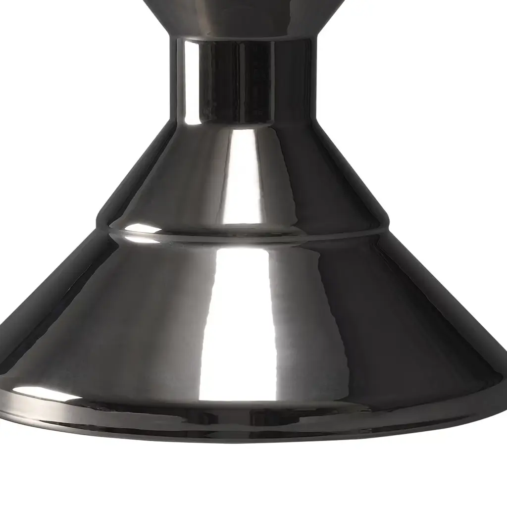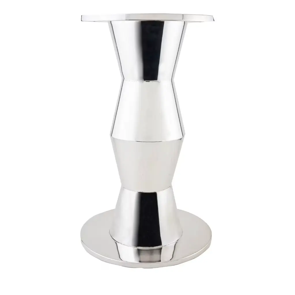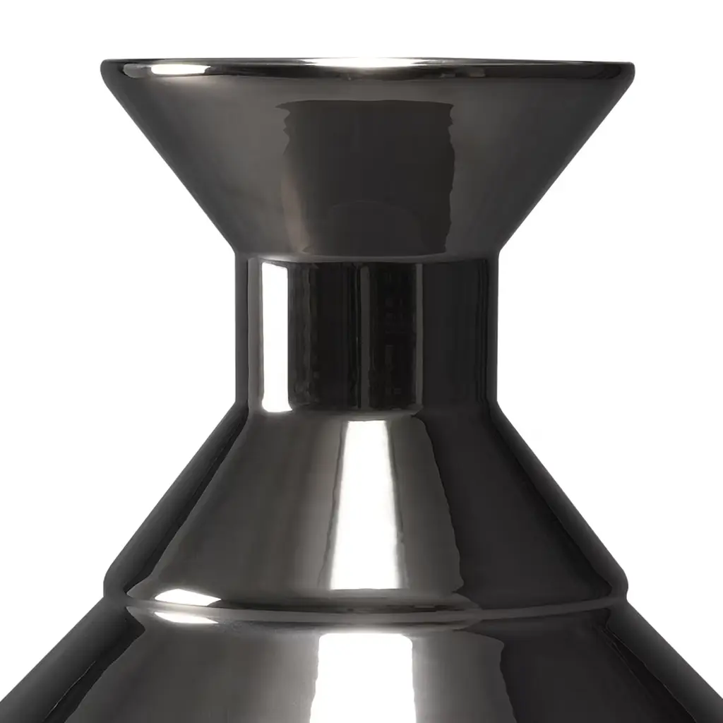 This elegant ceramic vase features a geometrical and minimalist shape with two connected cones of different sizes with a platinum finish.