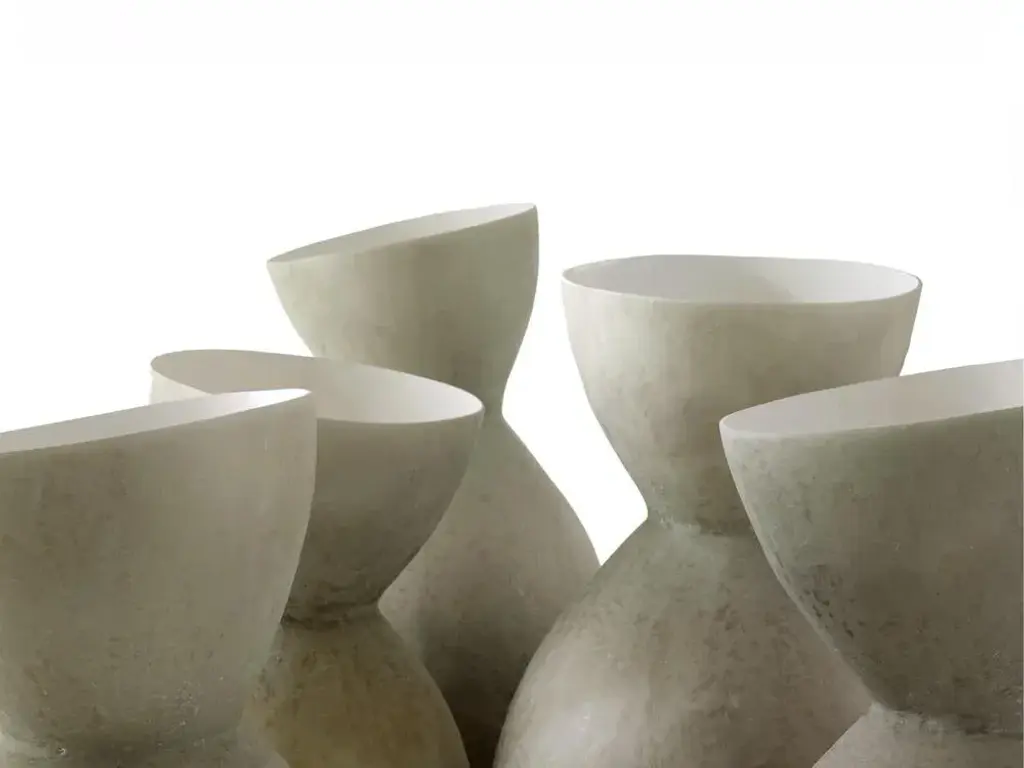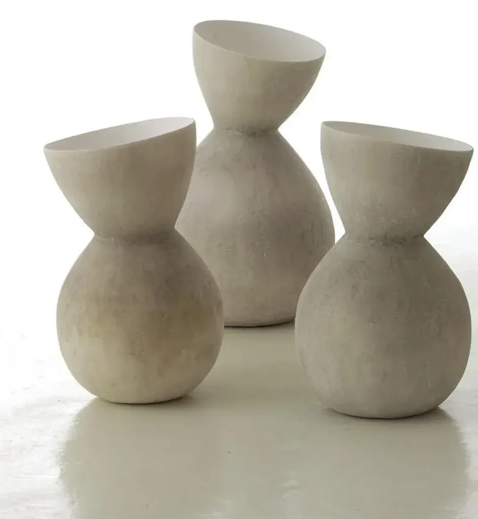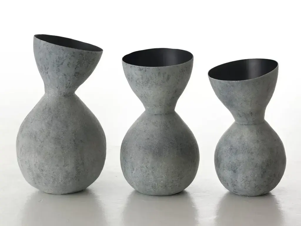 Set of 3 incline vase by imperfettolab dimensions: ø 38 x h 67 cm ø30 x h 55 cm ø 28 x h 49 cm materials: raw material