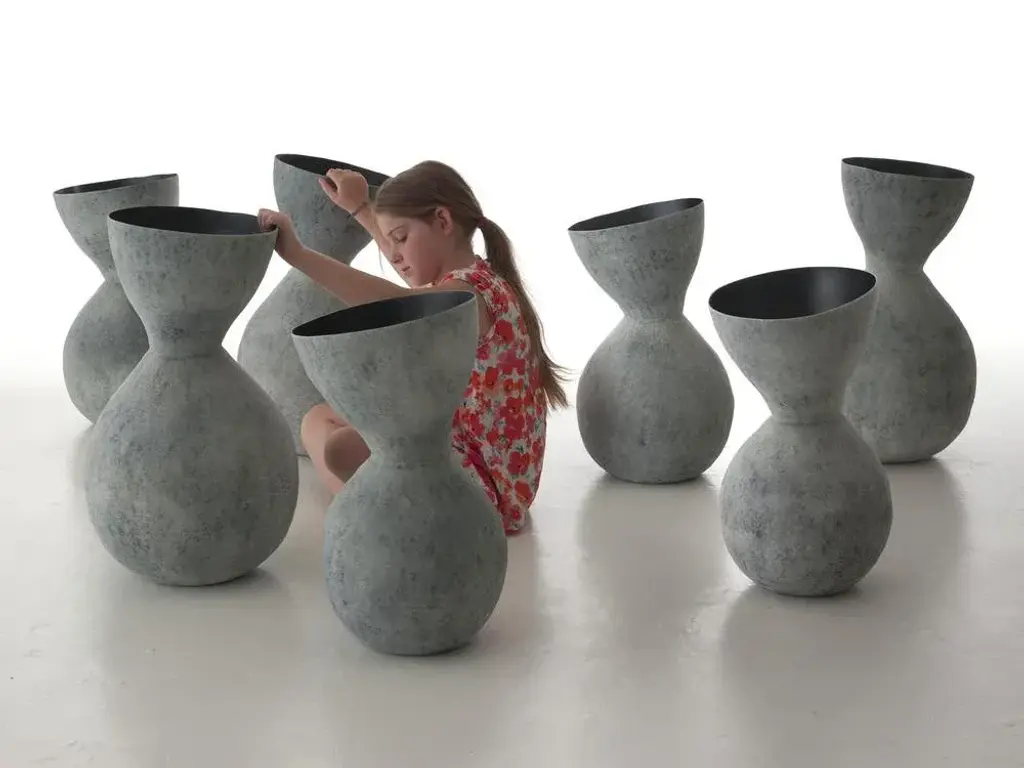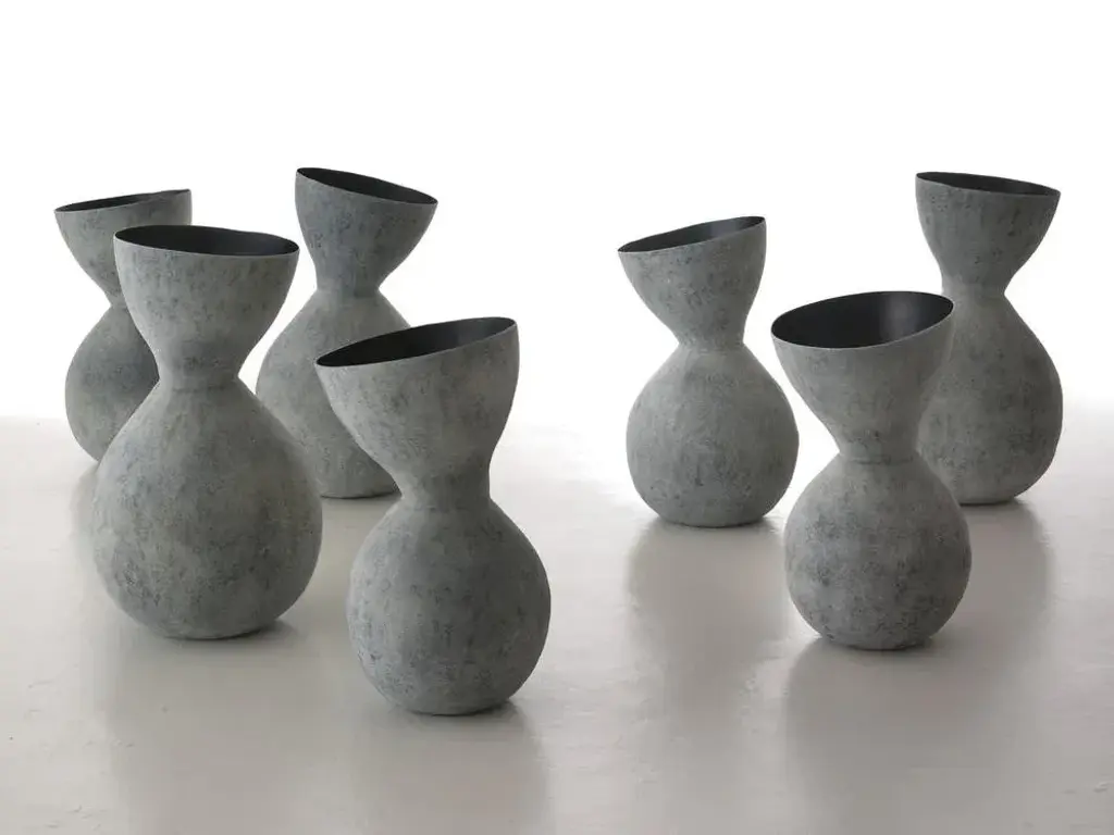 Set of 3 incline vase by imperfettolab dimensions: ø 38 x h 67 cm ø30 x h 55 cm ø 28 x h 49 cm materials: raw material