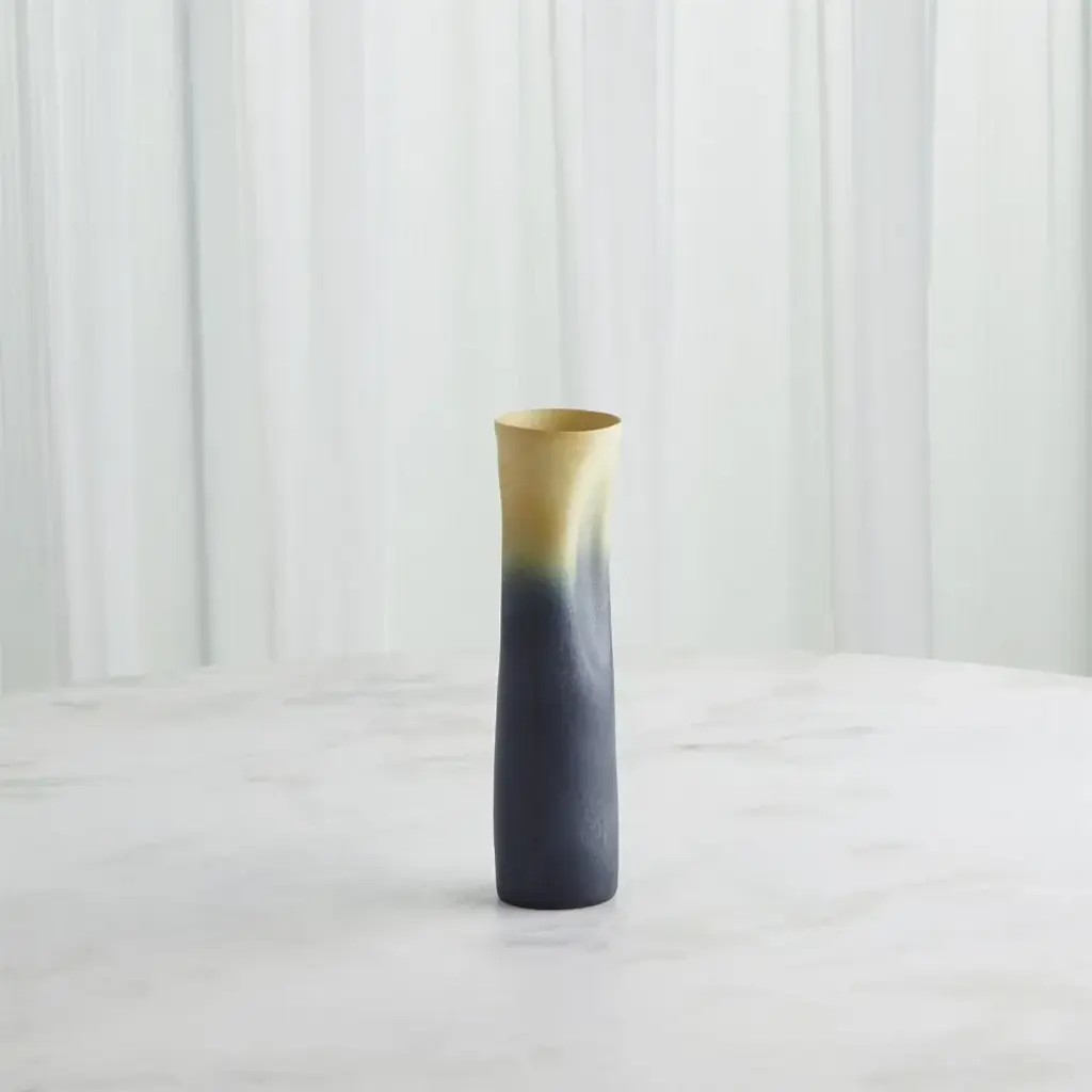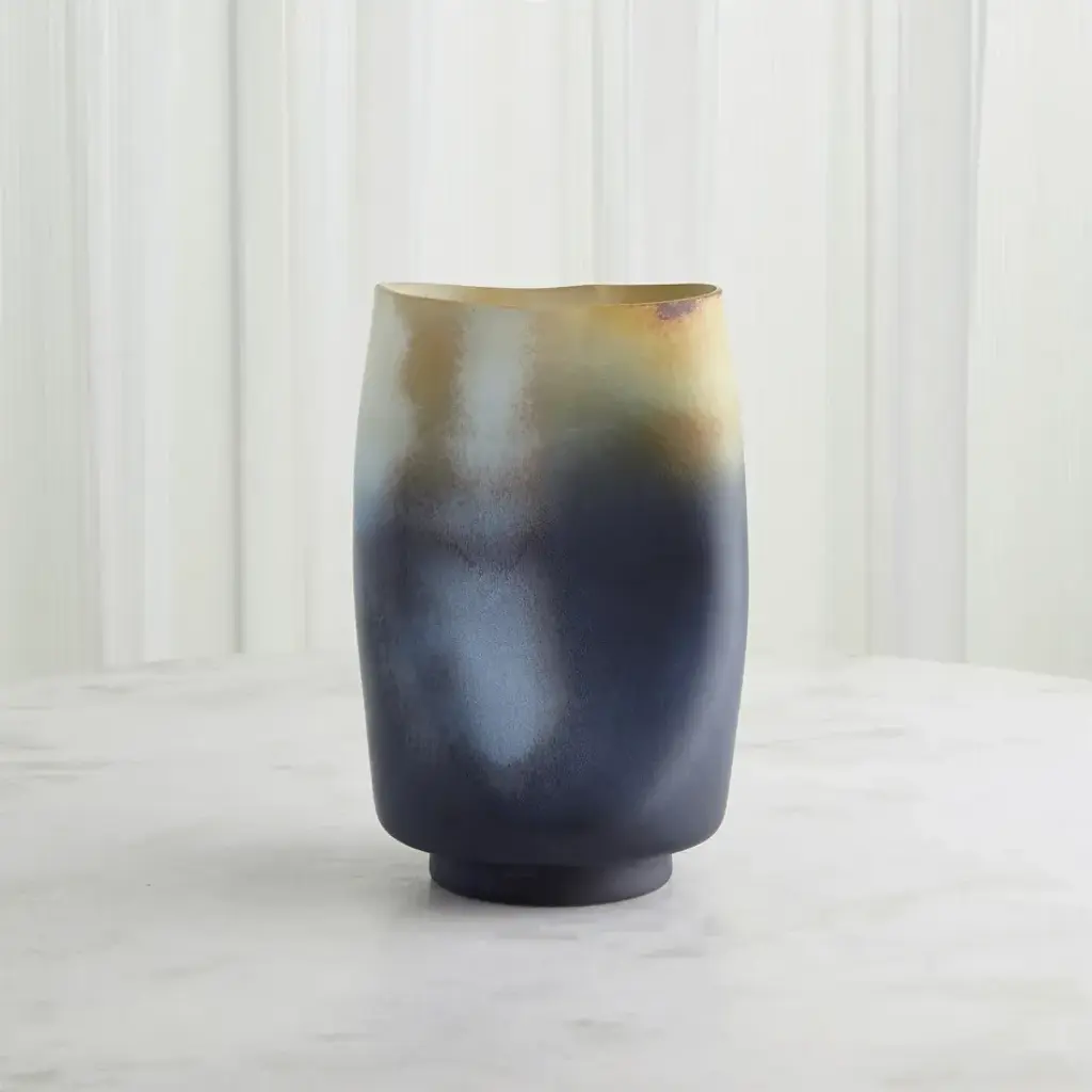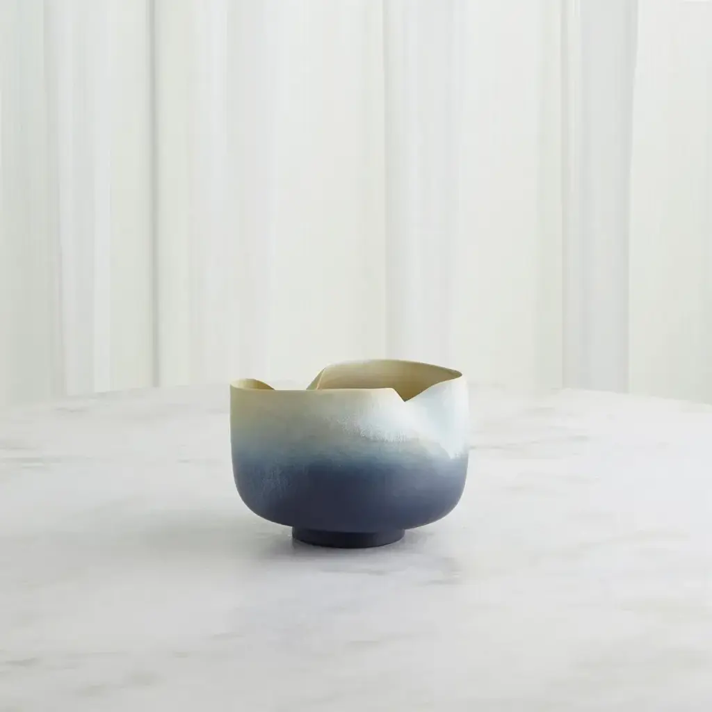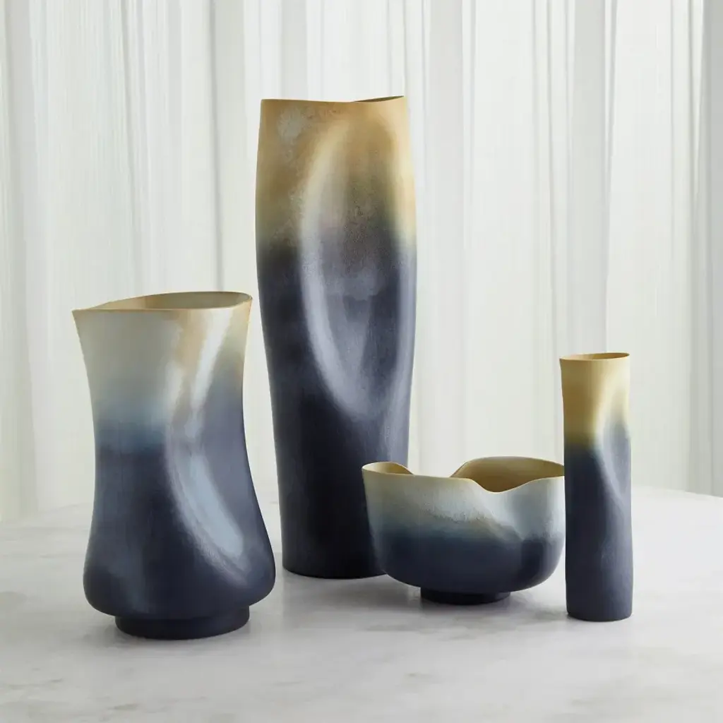 Crafted of Portuguese slip-cast ceramic, the Indent Vases and Bowl feature an overglaze color effect which occurs when a vessel is glazed a second time at a relatively lower temperature. Each piece is unique. From a fashion forward perspective, Global Views offers accessories, furniture, statement lighting, and an assortment of rugs and mirrors to add beauty and joy to your home.