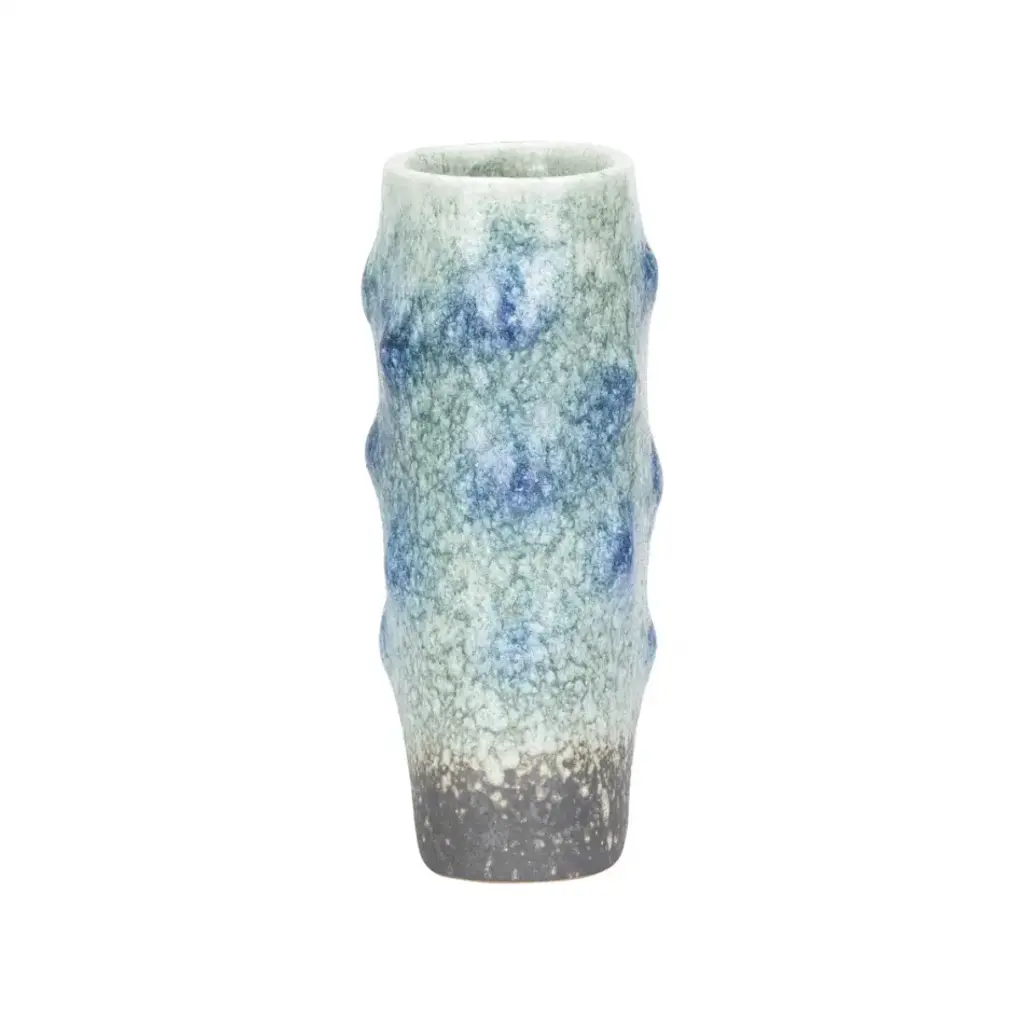 The Indigo Vase, part of the Shiga collection, is hand turned and uniquely finished in one of six ancient kilns in Japan. The vase is made of the soil that includes Feldspar and Quartz of the Shigaraki region and is influenced by nearby Lake Biwa. Made in Japan.
