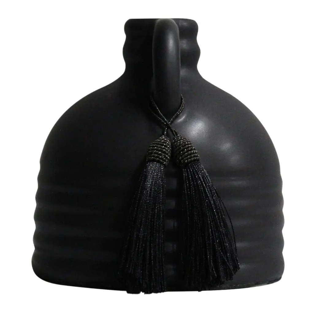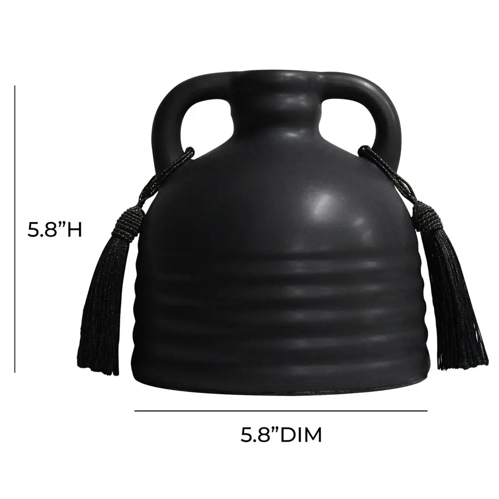 Adding a touch of whimsy and charm, the Ingrid Ceramic Vase is perfect for your mantel, side table, or dining table! This beautiful, and carefully crafted vase stands at 5.8" tall with charming tassels on each handle. Its timeless design ensures this vase will remain a cherished piece for years to come.