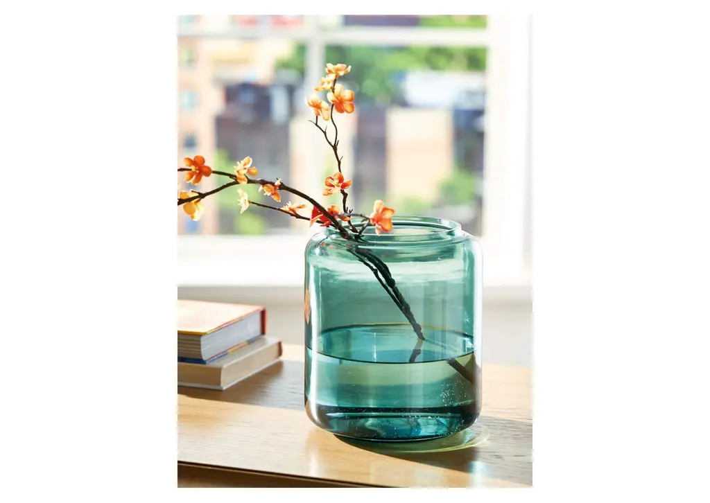 Beautifully crafted with blown glass, the Inisland vase is simply elegant in form. Its teal finish incorporates a subtle pop of contemporary color into your decor. Whether this piece is greeting you on an entryway table or completing a centerpiece arrangement, it's sure to make a stylish impression. Weight 5.000 lbs. (2.25kgs.)