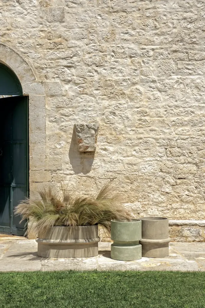 In lightweight concrete, the Innesti line of vases comprises three models with ‘soft’ contours. They can be used singly or in groups with different configurations to hold a wide variety of plant and flower compositions, for furnishing outdoor spaces of any size.“A game of fitting and connecting, a dialogue: the vases in the ‘Innesti’ collection have been designed to be used in pairs or groups. Their design,” says Studiopepe, “sees a complementary silhouette meaning they can be stood side by side or ‘fitted’ together to create constantly new combinations.”One of the two cylindrical vases (both with a diameter of 50cm/h60cm) in fact has a concave profile while the other is convex, so that they can be harmoniously fitted together to create a single element. The oval vase (50x100x50cm) with its convex profile is perfect for refined decorative ‘links’. These three new containers are available in the colours Putty and Sand.In the same way that grafts, in Italian innesti, result in new species and varieties of plants, Innesti by Ethimo and Studiopepe lead to the design of original configurations for furnishing gardens and patios.