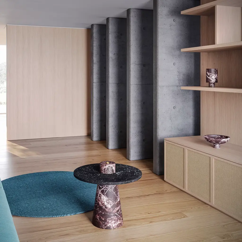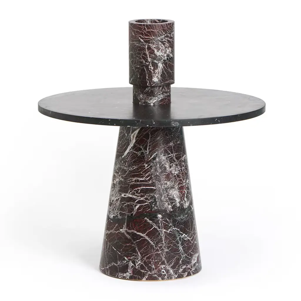 Crisp white veins define the eye-catching quality of red Levanto marble, prized stone employed to craft this stunning vase. Designer Karen Chekerdjian conceived it as an interlocking accessory to be incorporated with the tabletops of the designs from the Inside Out Collection. Consisting of two different-sized, stacked cylinders, this stylish piece is also ideal as a freestanding vase to splendidly display fresh flowers in any corner of the house. Please note that marbles and stones are natural materials and they can differ also if coming from the same quarry or the same block. The product shown may differ from purchased items. Every piece is unique.