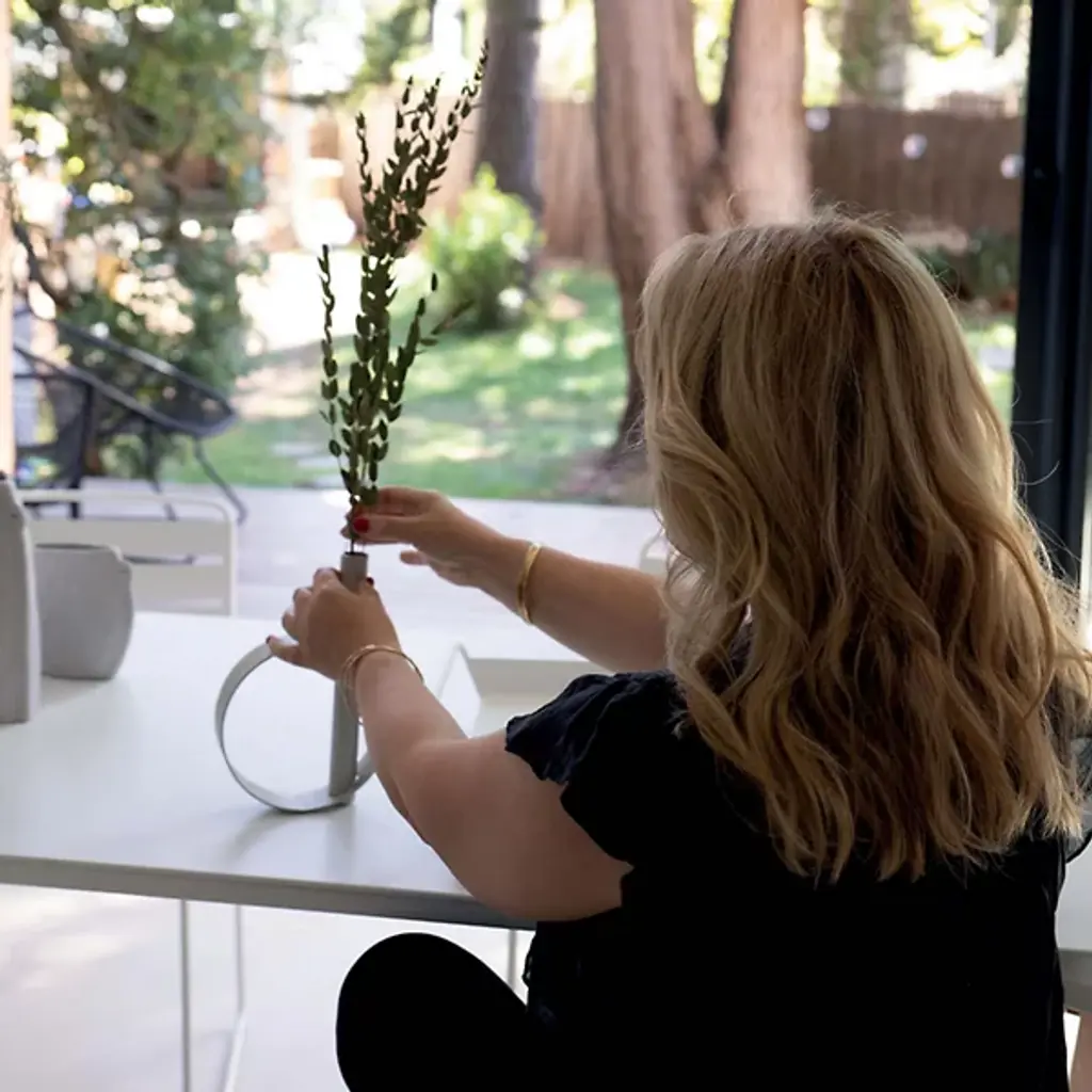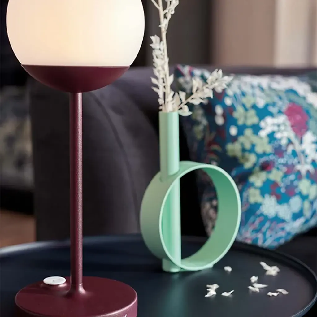 The perfect way to punctuate a stylish tabletop. The Ios Single Stem Vase by Fermob is a singular design, composed of 2 pieces: a watertight aluminum tube and a flat-bottomed ring of steel. The tube is removable, allowing for easy maintenance of a flower or small arrangement; get everything just the way you want it, then slide the tube back into its steel holder. Use this vase to add color and floral texture to a lounge or dining table, indoors or out.