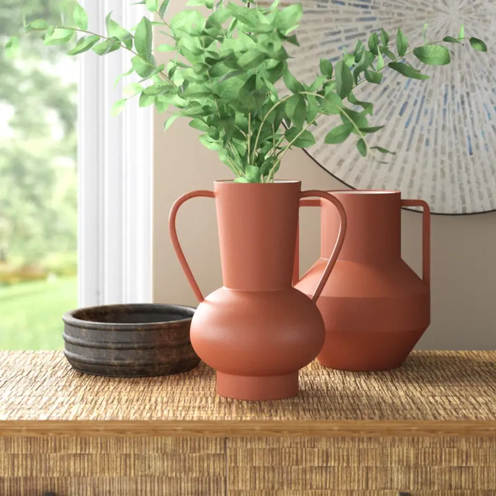 Irina 2 Piece Red Metal Table Vase Set