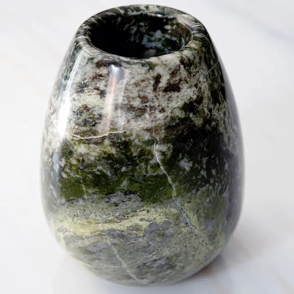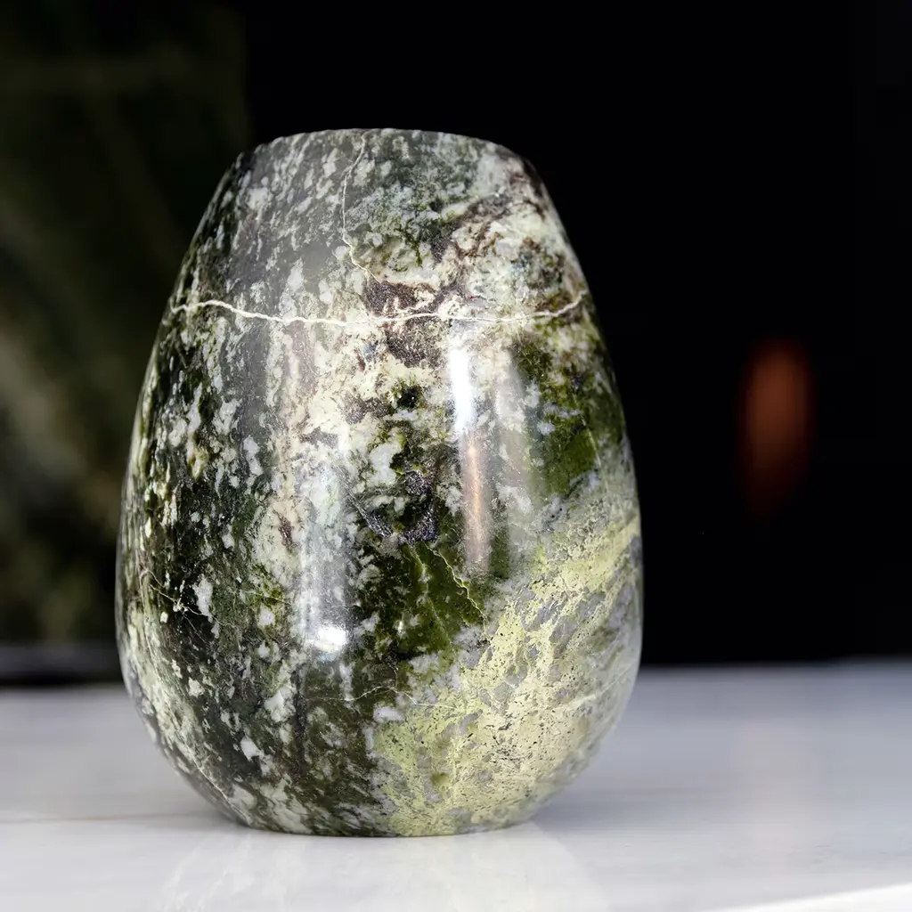 Exceptional green and white veining enhances the luminous and precious surface of this Irish Green marble vase, first designed by architect Franco Albini in 1940. An iconic work of art, its sleek shape is handcrafted from a single piece of marble hailing from Ireland. Adorning both indoor and outdoor areas, it is part of a series of numbered, certified by Officina Della Scala. Please ask the Concierge for customization options. This item has been part of the exhibition MARMO on display at Artemest Galleria until May 2023.