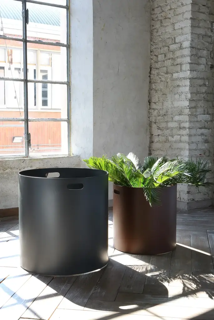 Irony is a garden vase with epoxy paint available in: embossed rust color, embossed white, gunmetal color.Characteristics:Products of Outdoor Collection are designed to be used outdoor. If left all time directly in contact with atmospherical agents without any protection, they will change – as it happens to all outdoor products.