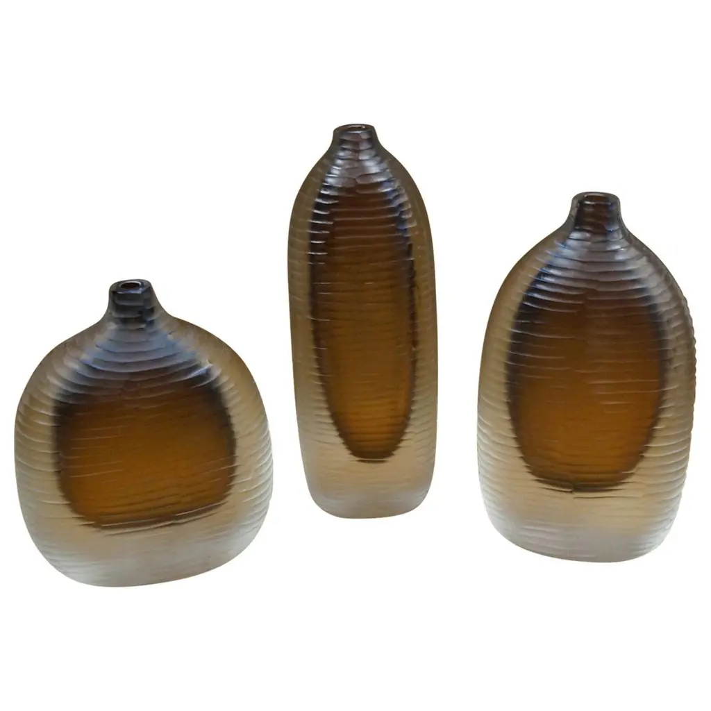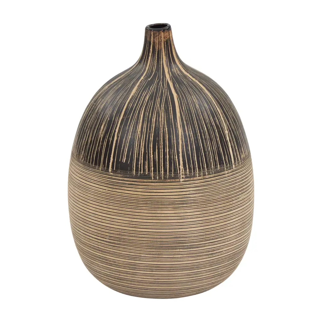 This Set Of Two Terra Cotta Vases Feature Natural Bamboo Pieces Hand-applied In A Stripe Motif Accented By A Black Washed Finish. Sizes: S- 10x12x10, L- 11x16x11
