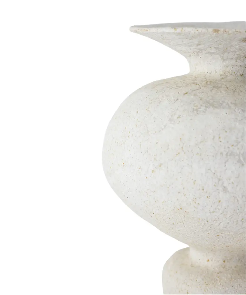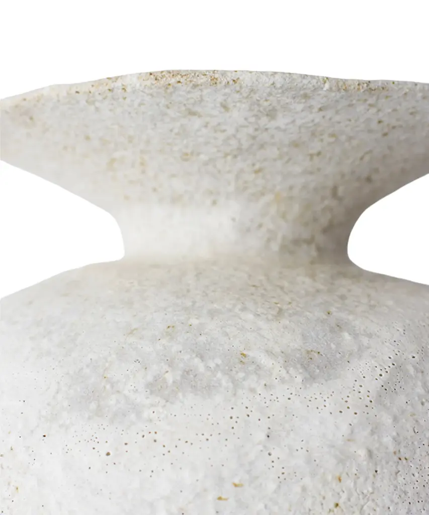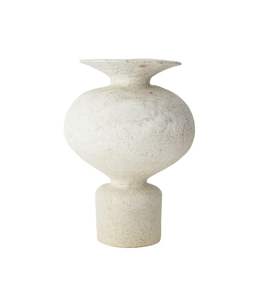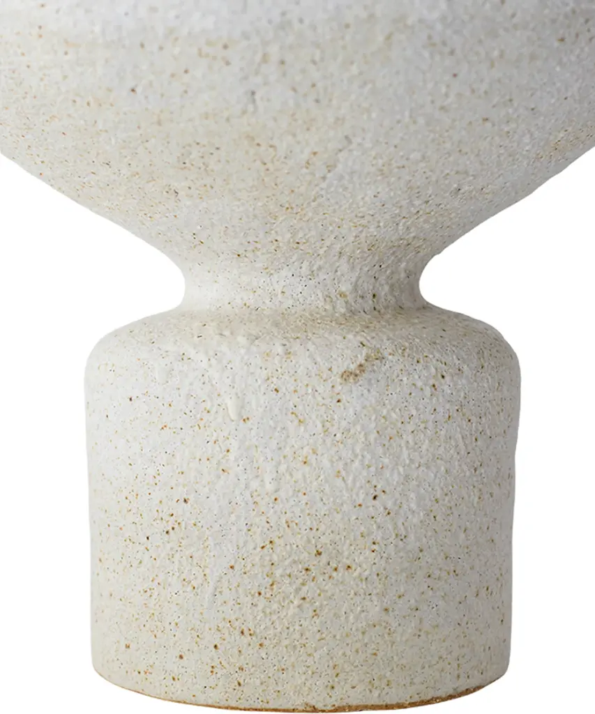 The "Isolated" series by Canoa Lab is comprised of reworked and redesigned forms and shapes from ancient Mediterranean vases. Each piece is designed in isolation and with larger dimensions, using the coiling technique. In some of these vases, metal is used, by employing precious metalworking techniques, such as wax-modelling and lost-wax casting. All of the pieces in this series are made of stoneware with grog from Manises (Valencia), and self-formulated glazes. The metal pieces are made of cast brass. The stoneware vase in handmade to order by the Valencia-based studio, Canoa Lab.