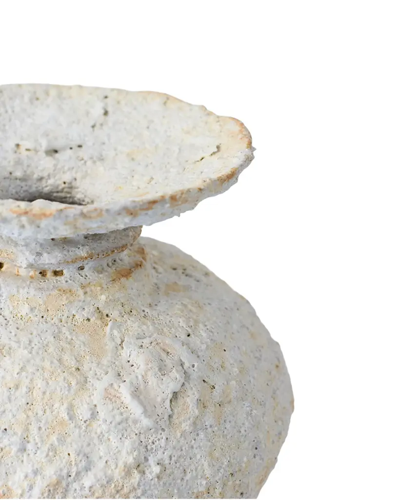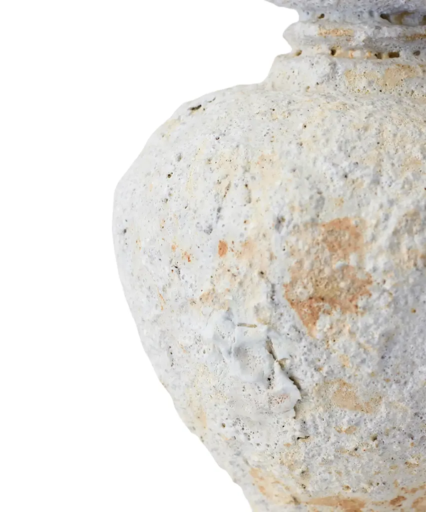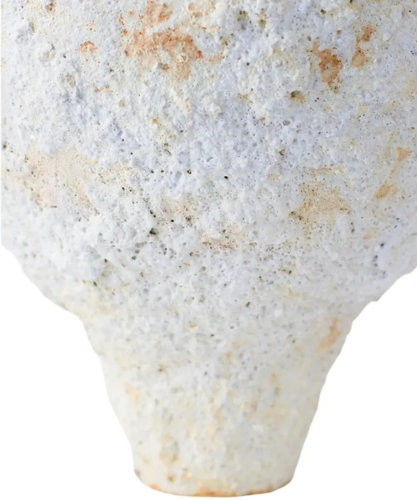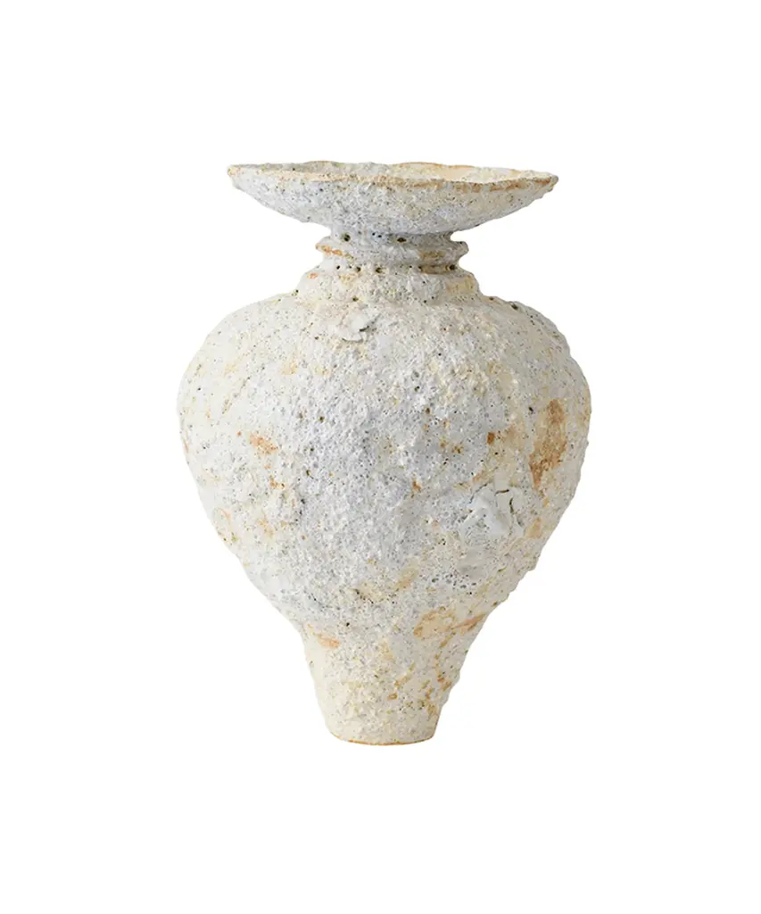 The "Isolated" series by Canoa Lab is comprised of reworked and redesigned forms and shapes from ancient Mediterranean vases. Each piece is designed in isolation and with larger dimensions, using the coiling technique. In some of these vases, metal is used, by employing precious metalworking techniques, such as wax-modelling and lost-wax casting. All of the pieces in this series are made of stoneware with grog from Manises (Valencia), and self-formulated glazes. The metal pieces are made of cast brass. The stoneware vase in handmade to order by the Valencia-based studio, Canoa Lab.
