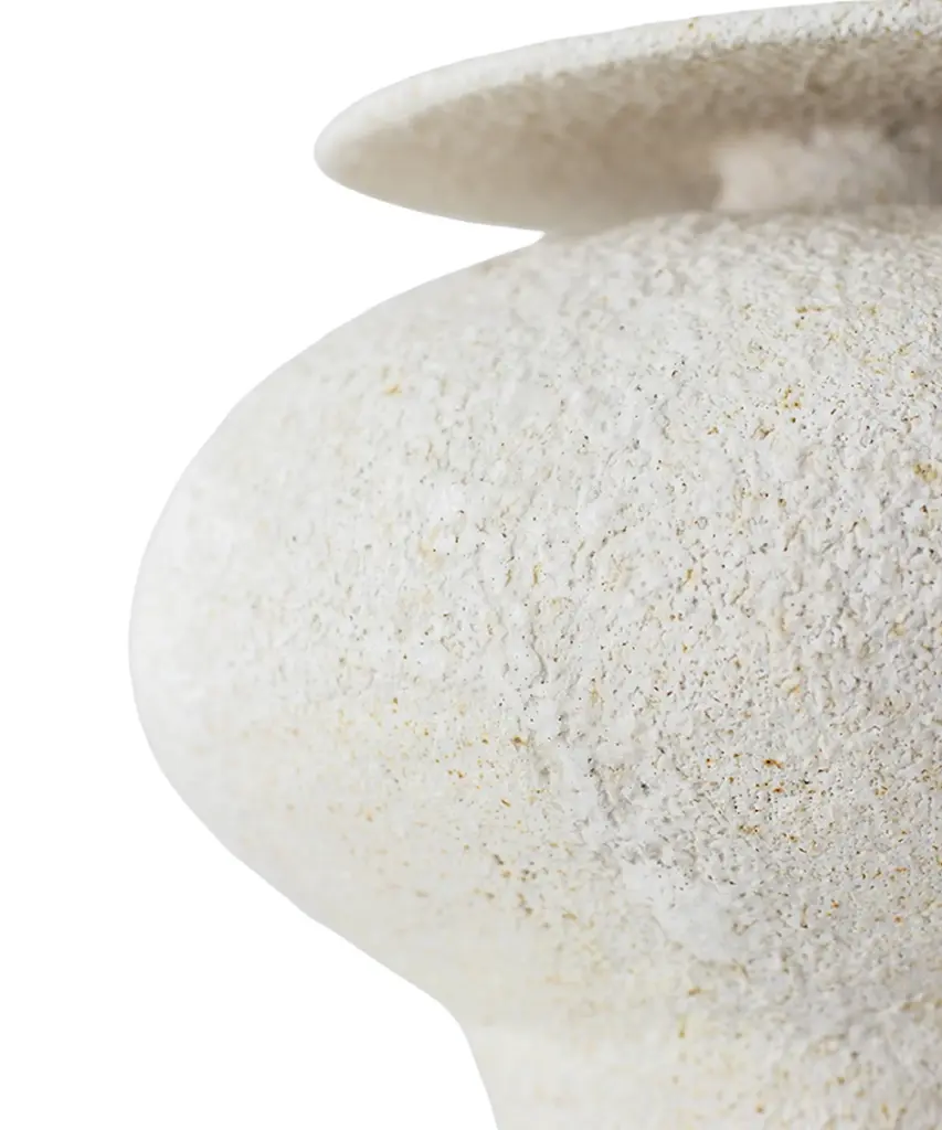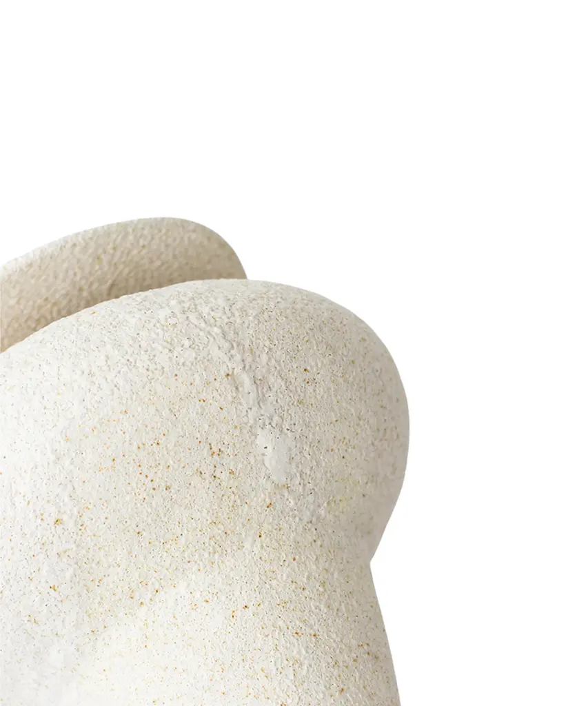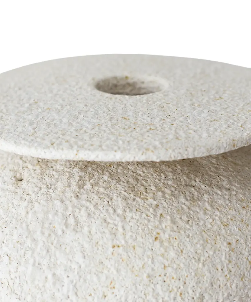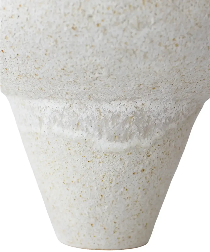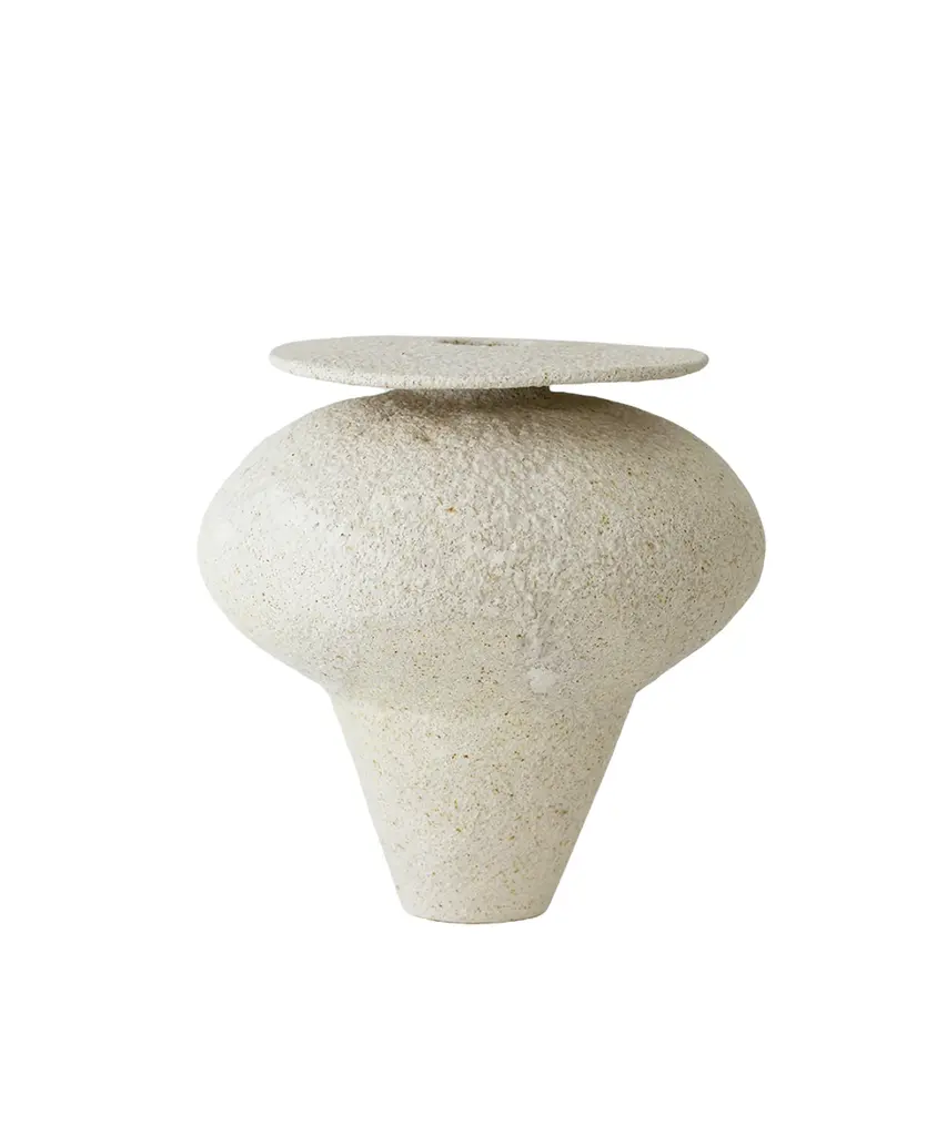 The "Isolated" series by Canoa Lab is comprised of reworked and redesigned forms and shapes from ancient Mediterranean vases. Each piece is designed in isolation and with larger dimensions, using the coiling technique. In some of these vases, metal is used, by employing precious metalworking techniques, such as wax-modelling and lost-wax casting. All of the pieces in this series are made of stoneware with grog from Manises (Valencia), and self-formulated glazes. The metal pieces are made of cast brass. The stoneware vase in handmade to order by the Valencia-based studio, Canoa Lab.