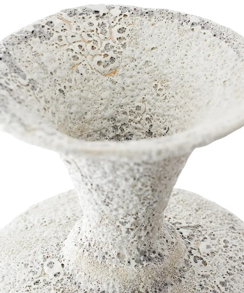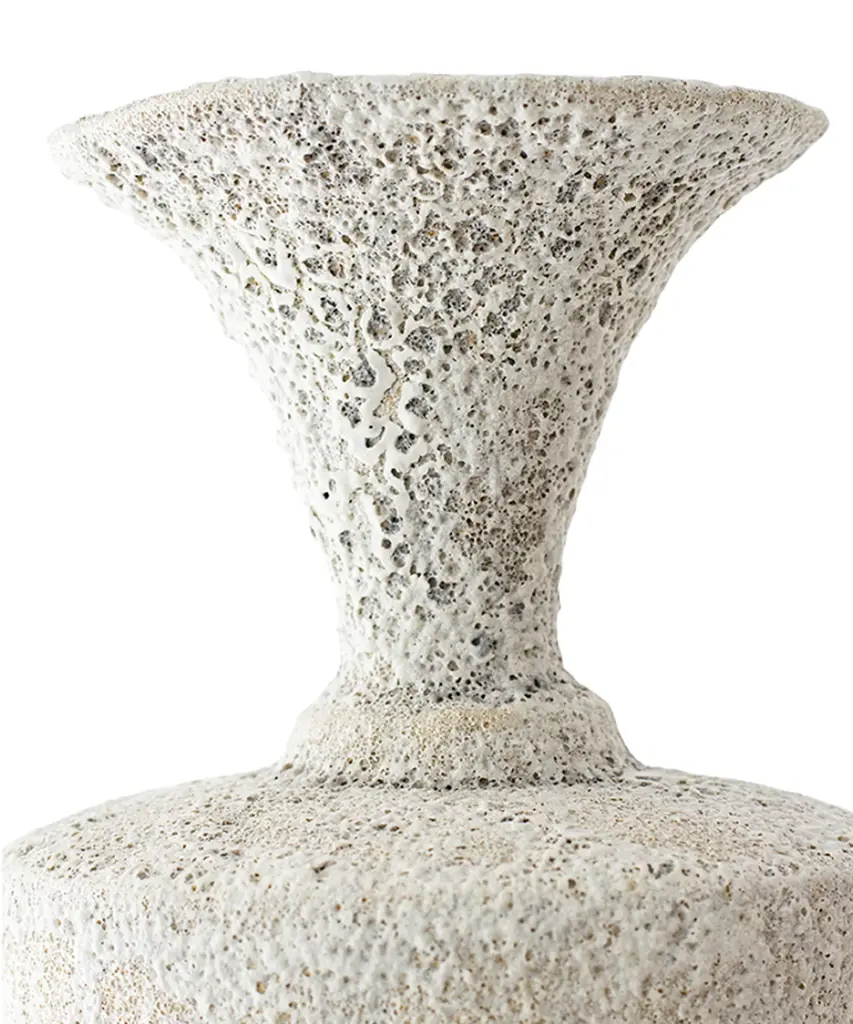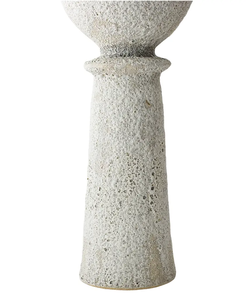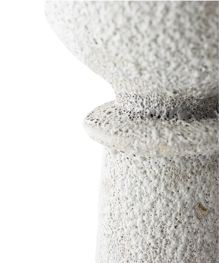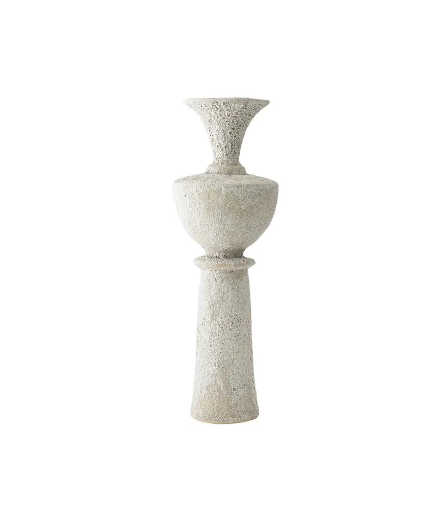 The "Isolated" series by Canoa Lab is comprised of reworked and redesigned forms and shapes from ancient Mediterranean vases. Each piece is designed in isolation and with larger dimensions, using the coiling technique. In some of these vases, metal is used, by employing precious metalworking techniques, such as wax-modelling and lost-wax casting. All of the pieces in this series are made of stoneware with grog from Manises (Valencia), and self-formulated glazes. The metal pieces are made of cast brass. The stoneware vase in handmade to order by the Valencia-based studio, Canoa Lab.