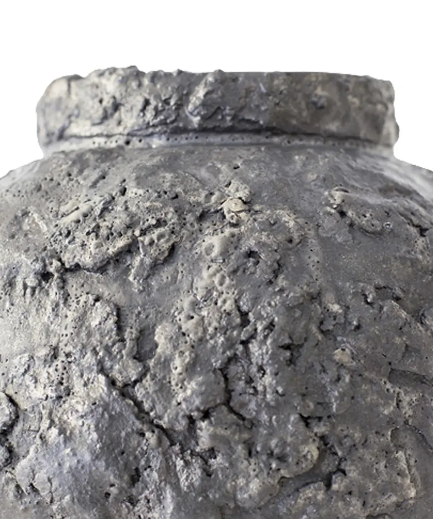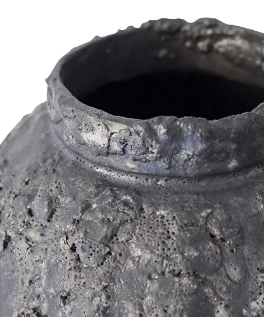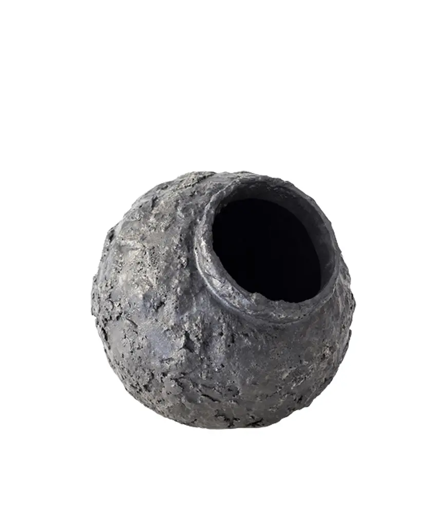 The "Isolated" series by Canoa Lab is comprised of reworked and redesigned forms and shapes from ancient Mediterranean vases. Each piece is designed in isolation and with larger dimensions, using the coiling technique. In some of these vases, metal is used, by employing precious metalworking techniques, such as wax-modelling and lost-wax casting. All of the pieces in this series are made of stoneware with grog from Manises (Valencia), and self-formulated glazes. The metal pieces are made of cast brass. The stoneware vase in handmade to order by the Valencia-based studio, Canoa Lab.