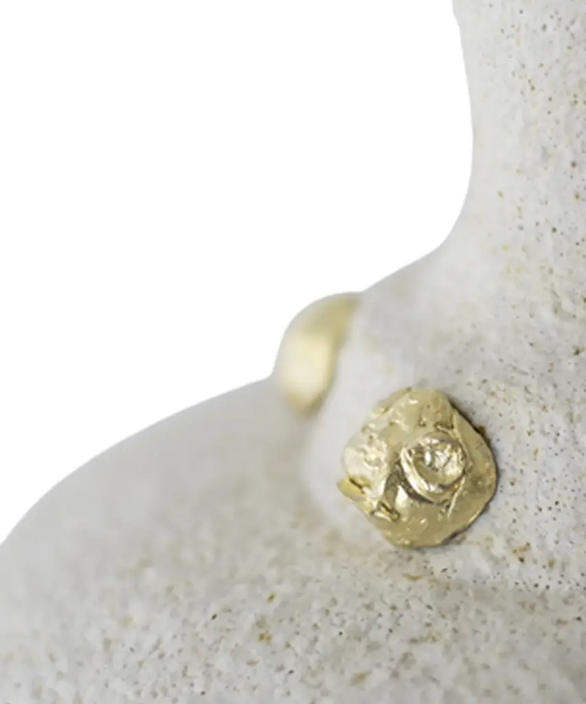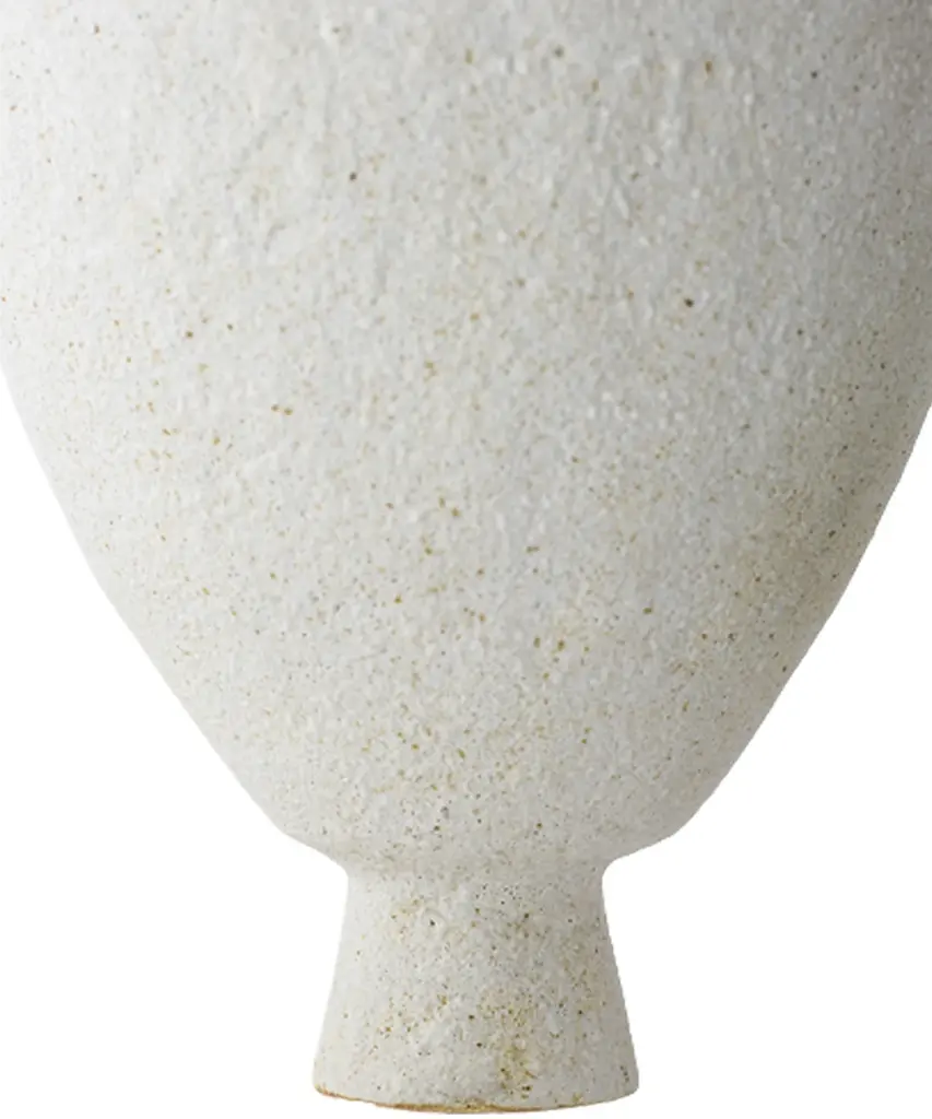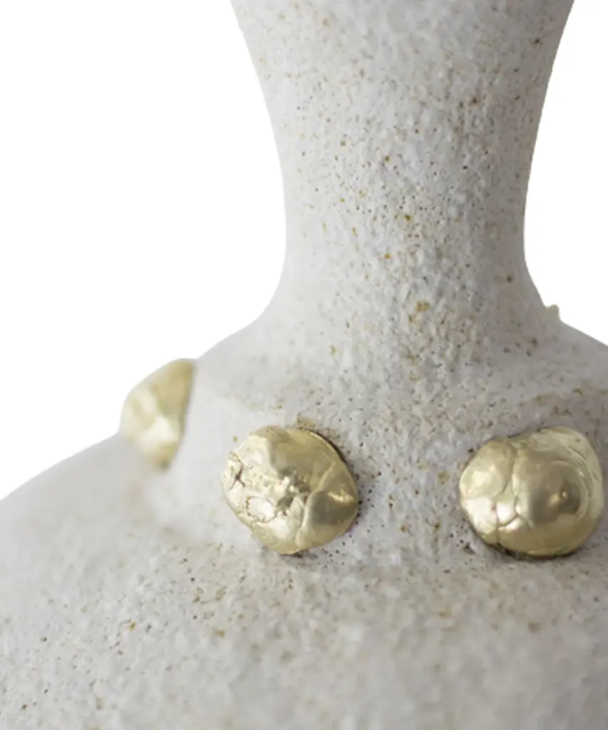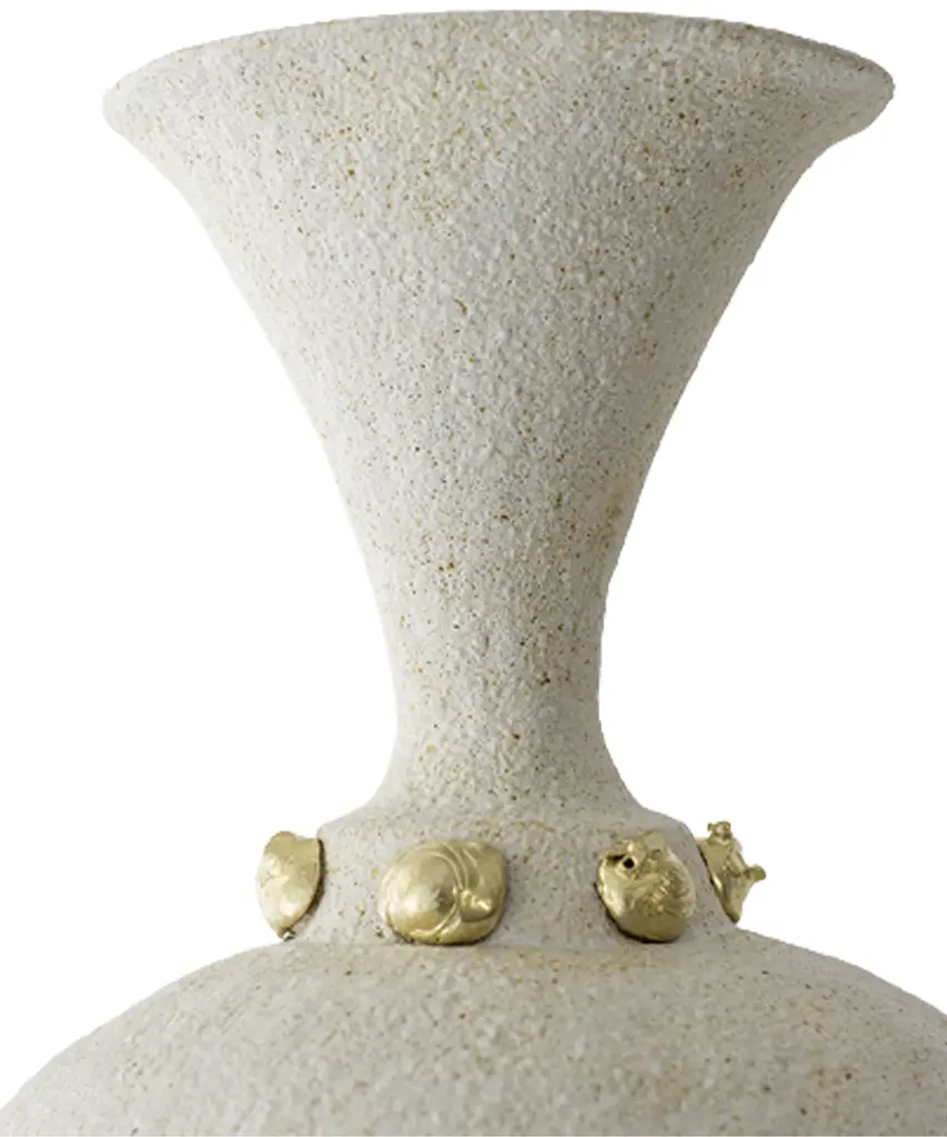 The "Isolated" series by Canoa Lab is comprised of reworked and redesigned forms and shapes from ancient Mediterranean vases. Each piece is designed in isolation and with larger dimensions, using the coiling technique. In some of these vases, metal is used, by employing precious metalworking techniques, such as wax-modelling and lost-wax casting. All of the pieces in this series are made of stoneware with grog from Manises (Valencia), and self-formulated glazes. The metal pieces are made of cast brass. The stoneware vase in handmade to order by the Valencia-based studio, Canoa Lab.