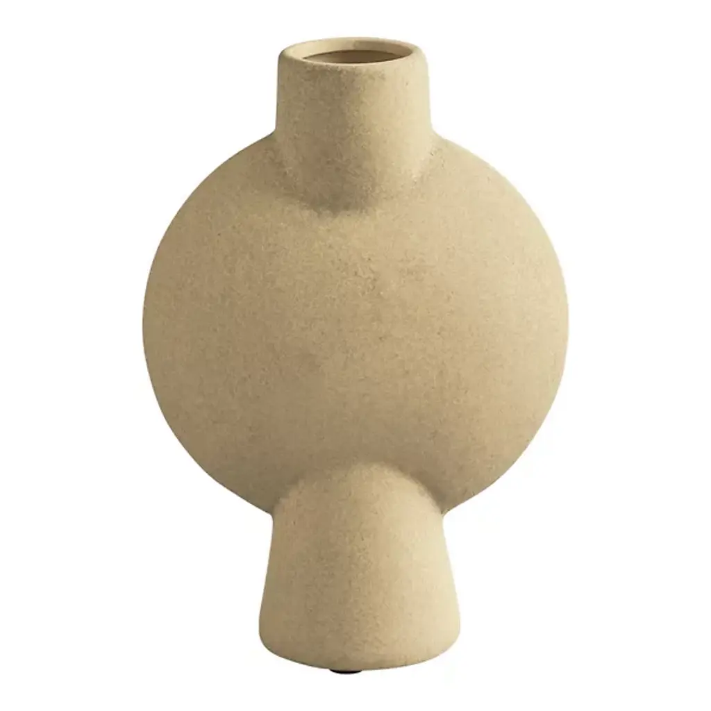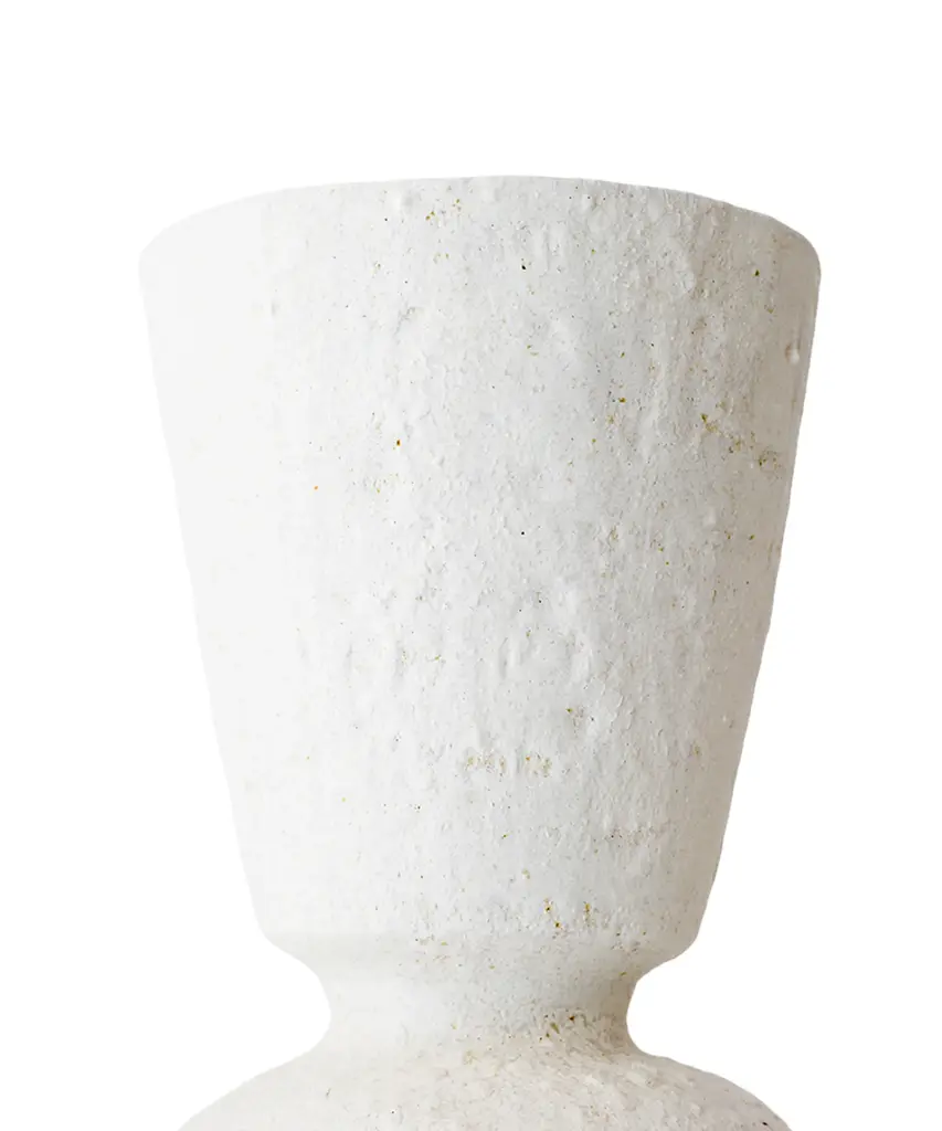 The "Isolated" series by Canoa Lab is comprised of reworked and redesigned forms and shapes from ancient Mediterranean vases. Each piece is designed in isolation and with larger dimensions, using the coiling technique. In some of these vases, metal is used, by employing precious metalworking techniques, such as wax-modelling and lost-wax casting. All of the pieces in this series are made of stoneware with grog from Manises (Valencia), and self-formulated glazes. The metal pieces are made of cast brass. The stoneware vase in handmade to order by the Valencia-based studio, Canoa Lab.
