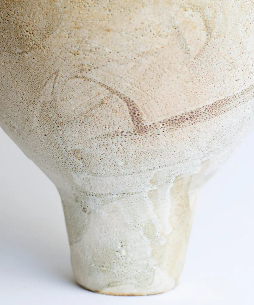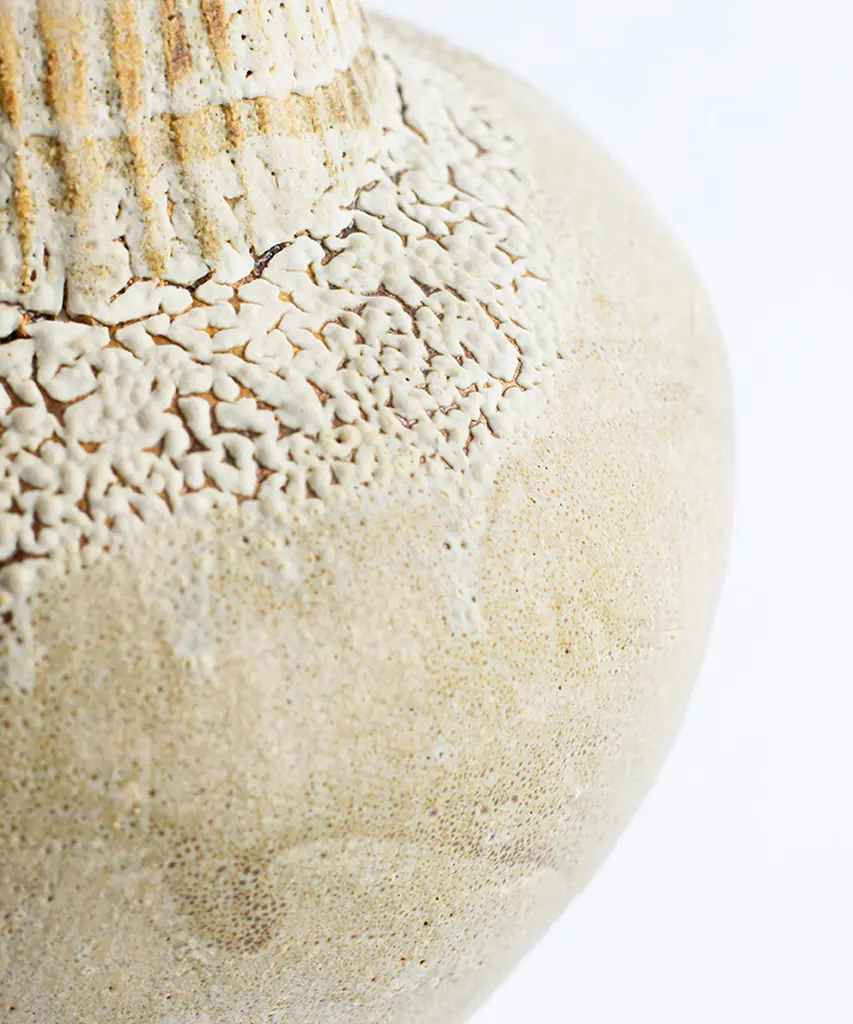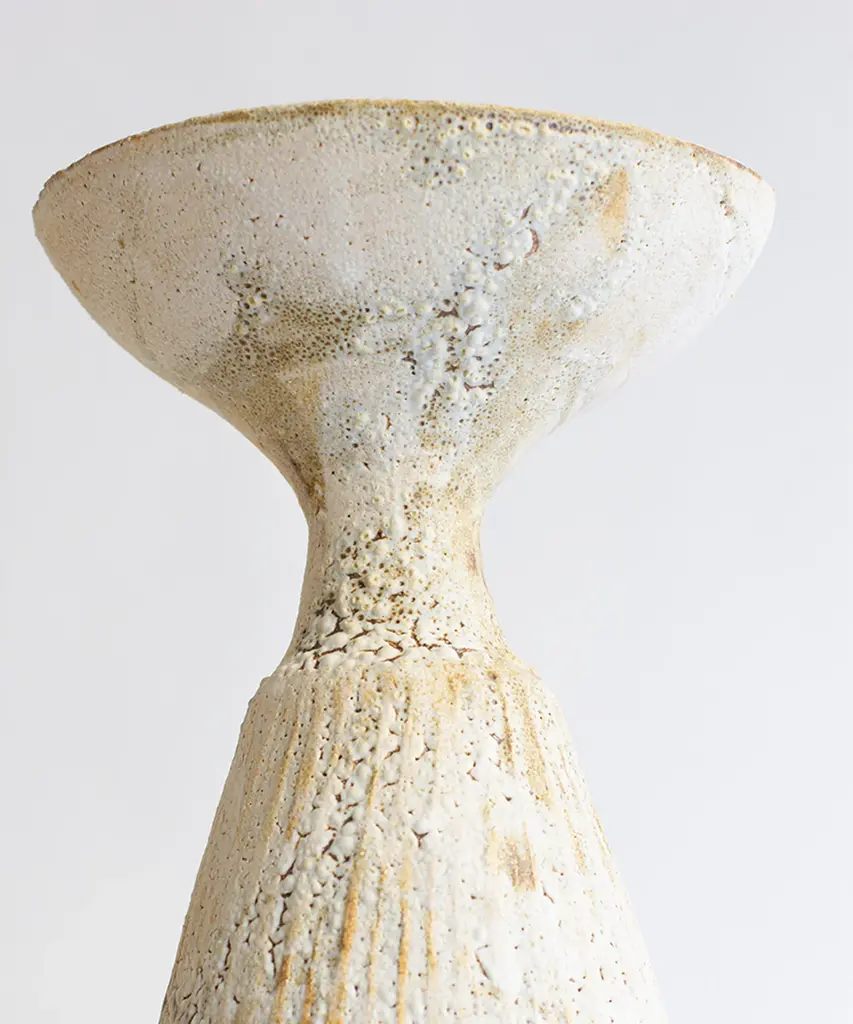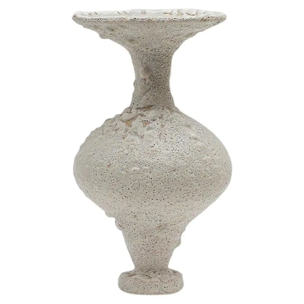 The "Isolated" series by Canoa Lab is comprised of reworked and redesigned forms and shapes from ancient Mediterranean vases.Each piece is designed in isolation and with larger dimensions, using the coiling technique. In some of these vases, metal is used, by employing precious metalworking techniques, such as wax-modelling and lost-wax casting. All of the pieces in this series are made of stoneware with grog from Manises (Valencia), and self-formulated glazes. The metal pieces are made of cast brass. The stoneware vase in handmade to order by the Valencia-based studio, Canoa Lab.
