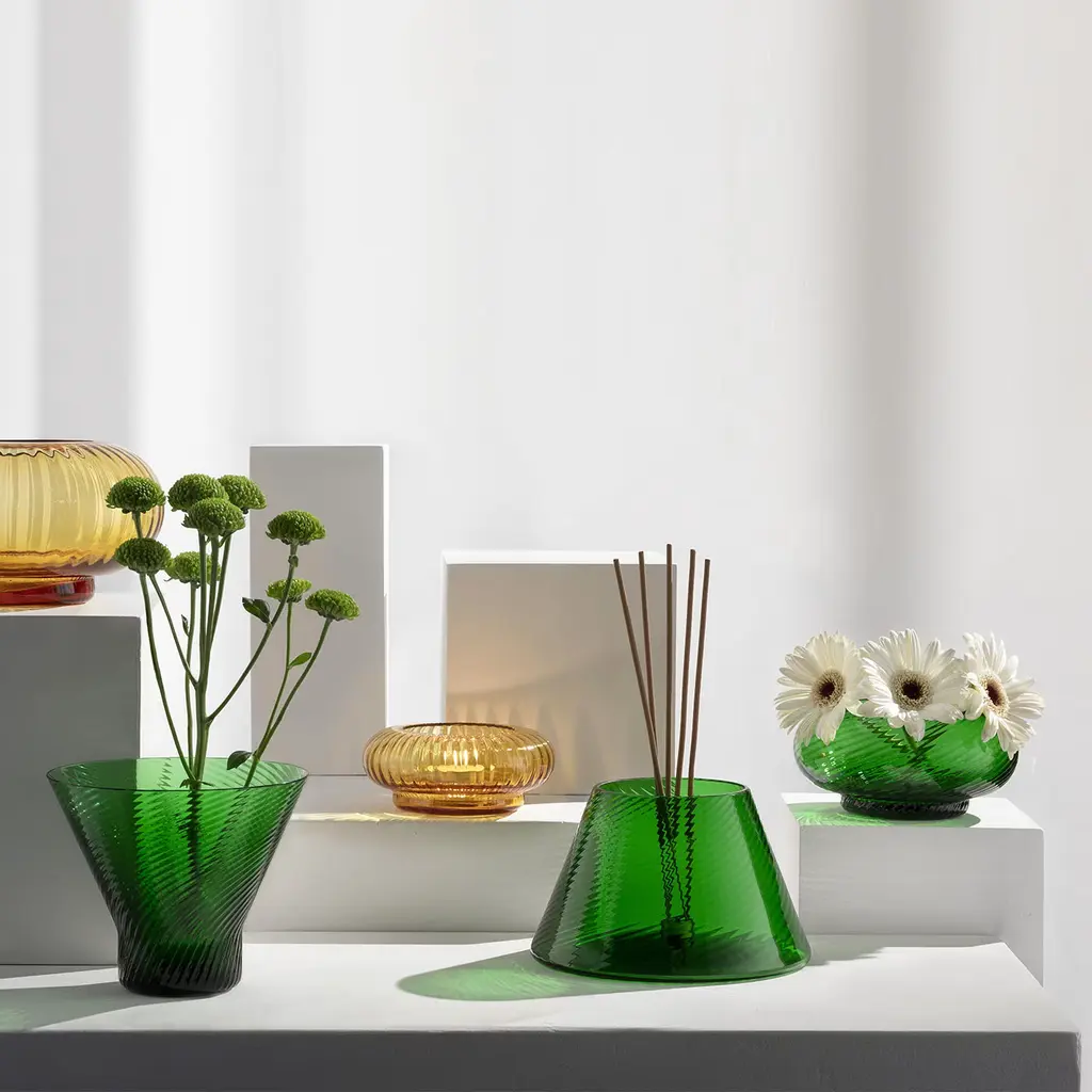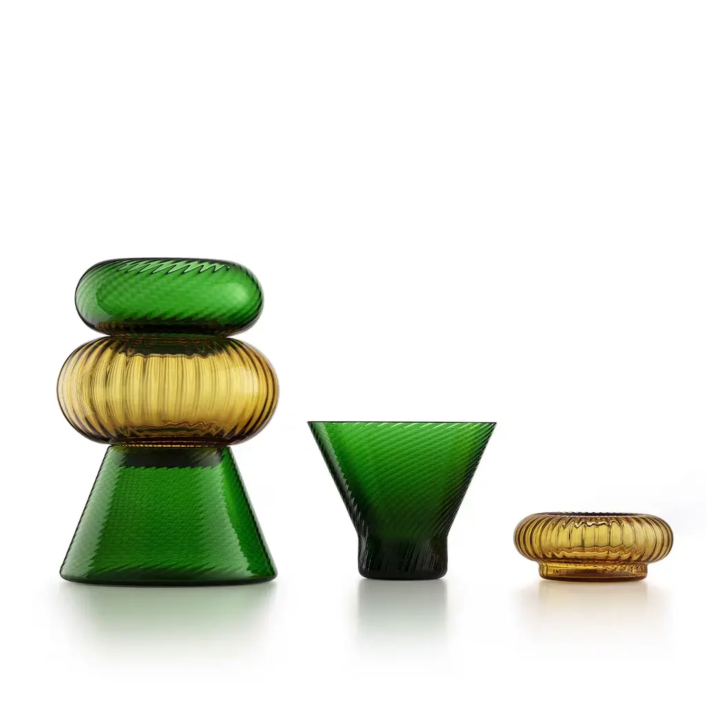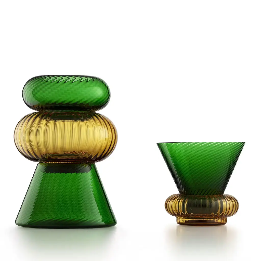 Issey Set Of 5 Green And Amber Vases By Matteo Zorzenoni
