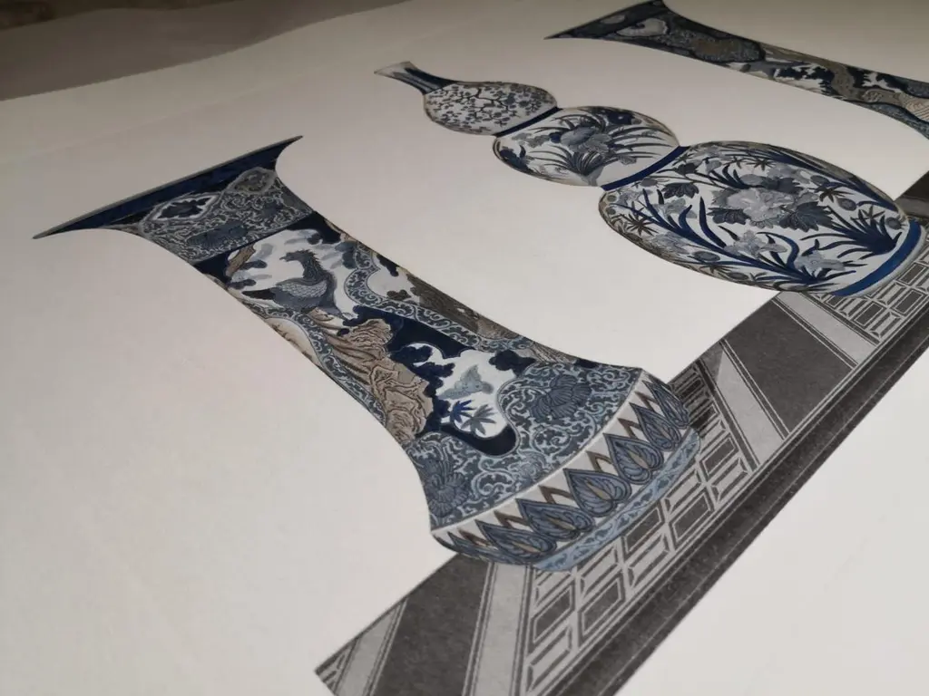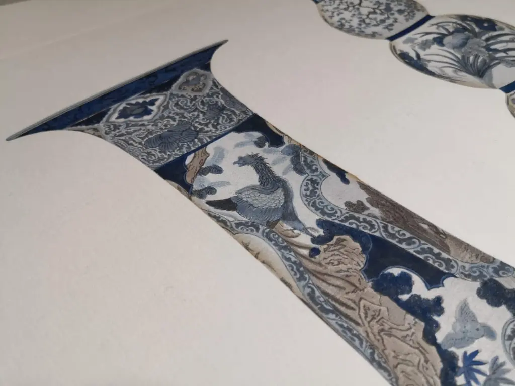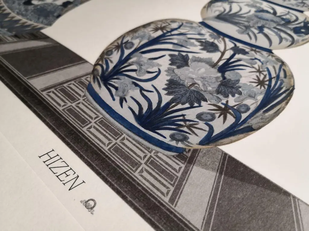 Large art print of three Japanese "HIZEN" vases with shades of blue, grey and white. Printed by hand on engraving paper with an antique star press. Completely hand-coloured by our skilled craftsmen using watercolours and tempera.With an experience of over 40 years, Artecornici design creates high-quality handmade frames using precious woods and working various types of high-quality finishes, lacquers and ageing, offering a vast choice of models.Each print is an artisanal Florentine product, reproducing images of the European 18th and 19th centuries with the same printing techniques (engraving with a star press), the golden age of prints, which are then finished and watercoloured exclusively by handThe richness of our work lies in the ability to make our customers' requests our own, creating products with personalized, unique, and precious creations, renewing our collections year after year.